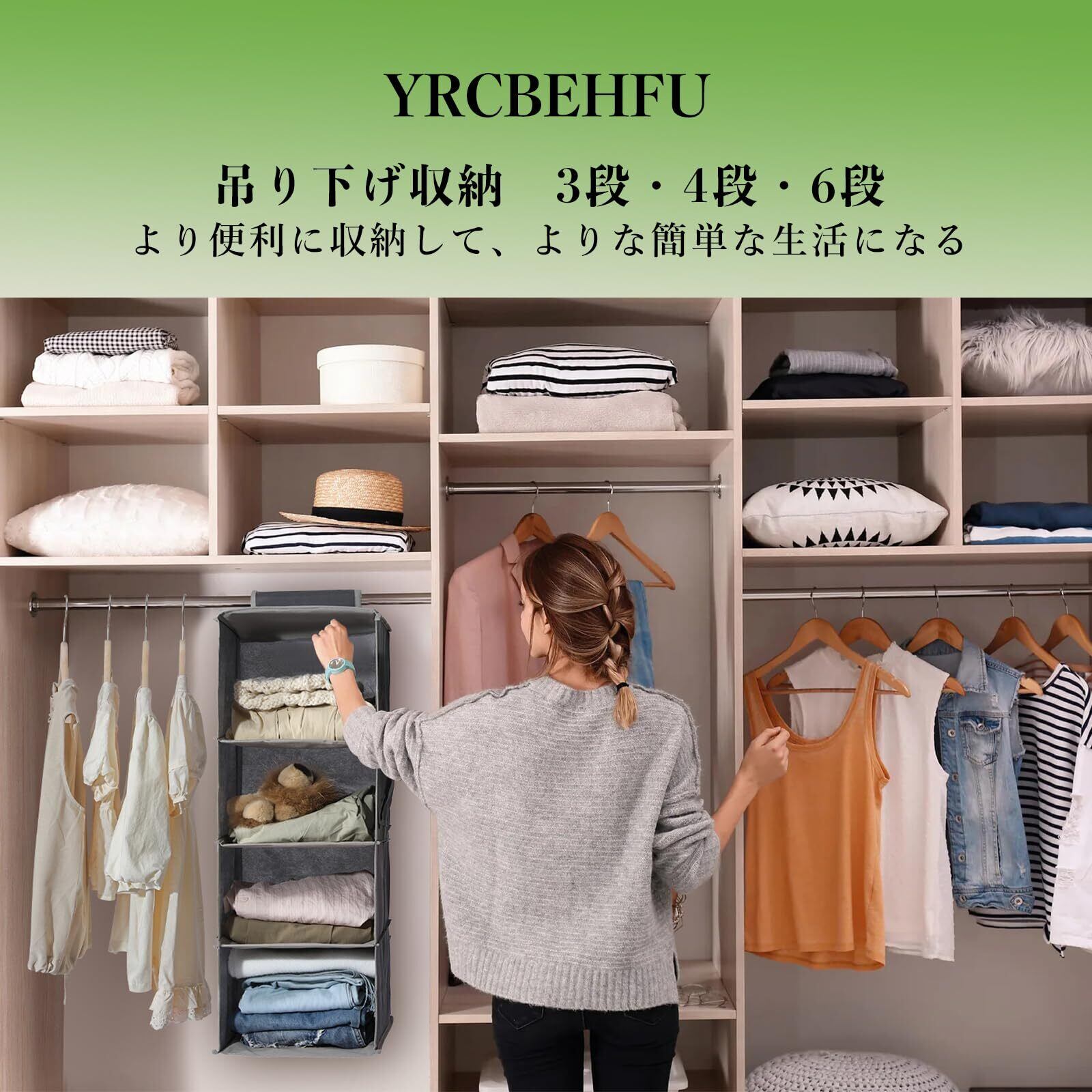 「YRCBEHFU 吊り下げ収納」をぜひご覧ください!この収納ラックは、機能的でスタイリッシュなデザインが特徴で、衣類や小物の収納をスマートにサポートします。大容量の6段収納で、空間を有効に利用できます。
