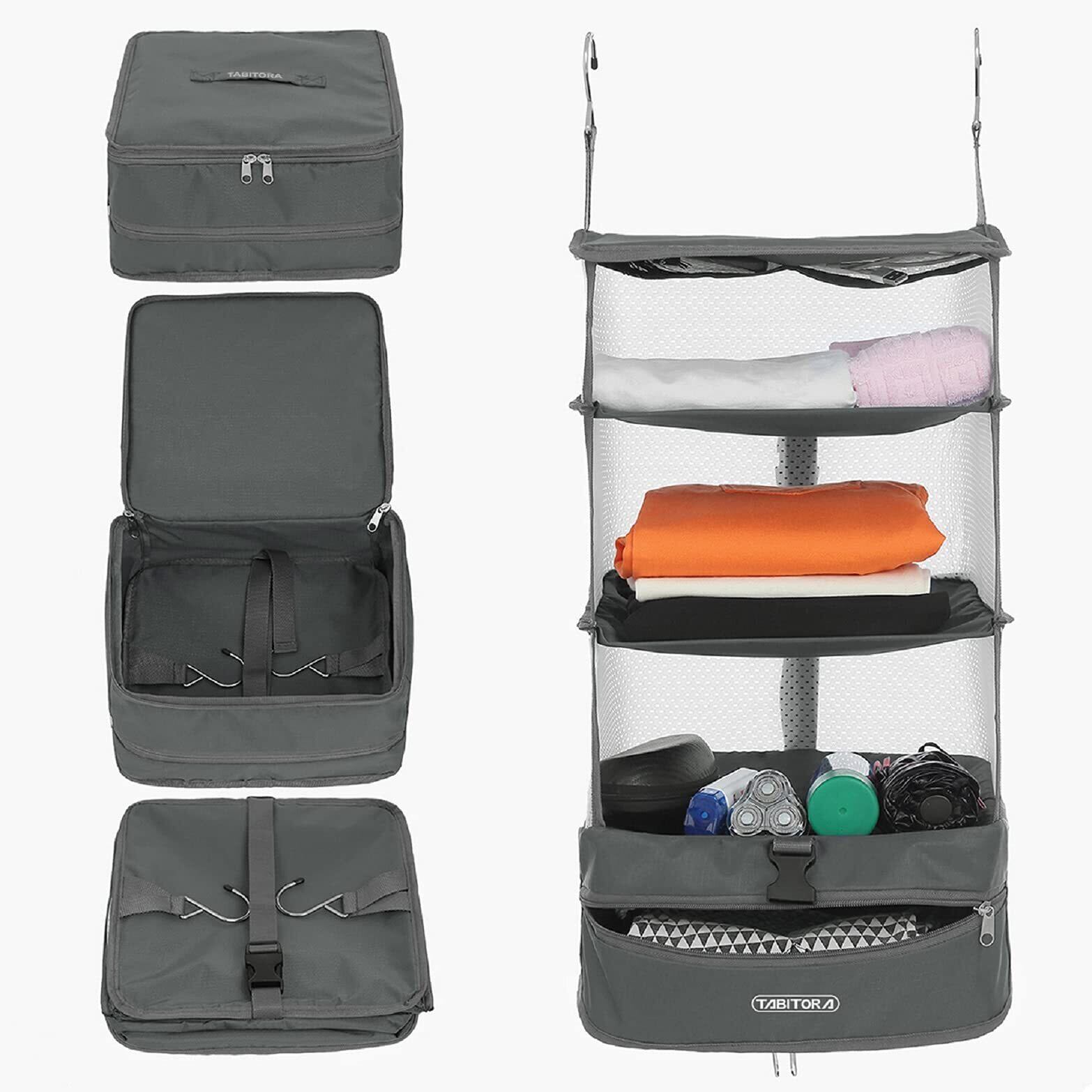 TABITORA(タビトラ) クローゼット吊り下げ収納 インナーバッグ 衣類ラック 収納 旅行 出張 クローゼット 収納ボックス 吊り下げ 省スペース 大容量 衣装ケース 4段 取付簡単 折り畳み式 グレー L | yankees