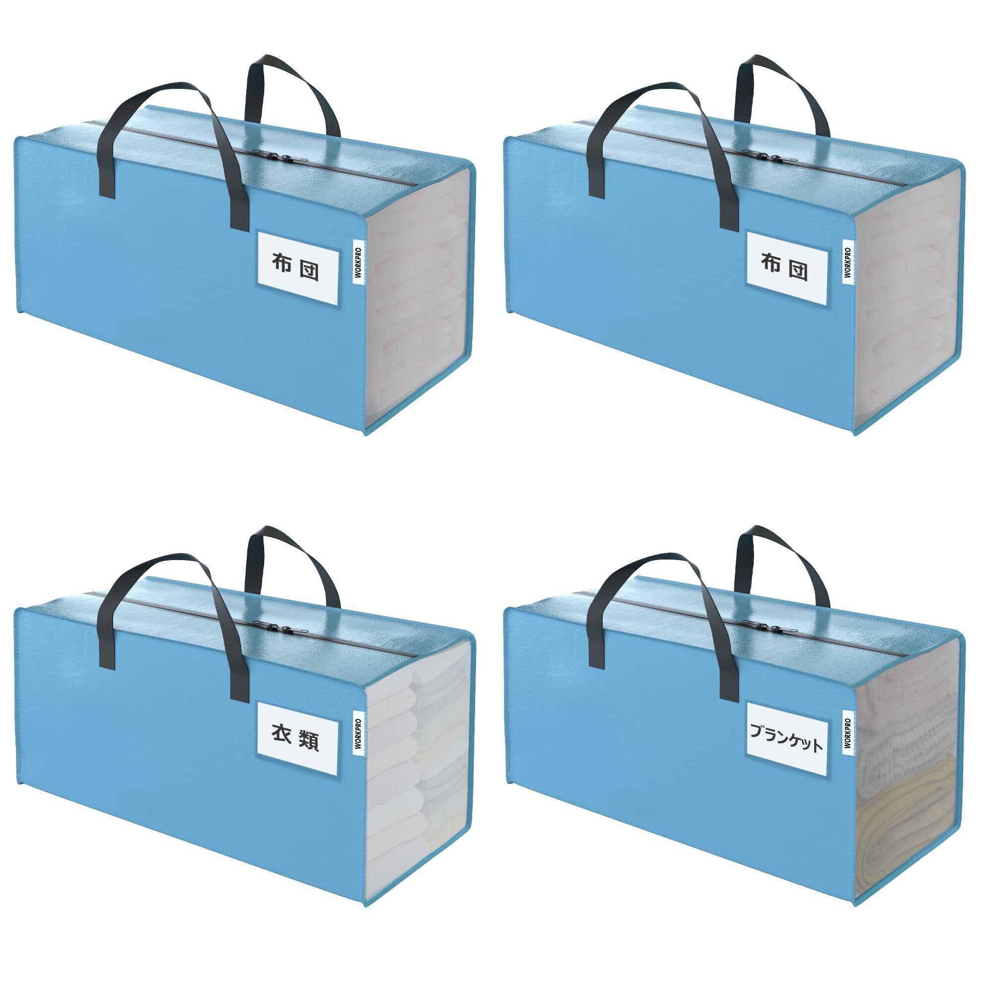 WORKPRO 布団収納バッグ 引越しバッグ 大型収納袋 大型収納カバン 100L大容量 73*36*40CM 耐荷重22.7KG 背負える仕様 持ち手付き 布団 衣類収納袋 透明窓 防塵 防水 引っ越し キャンプ 旅行 収納用 4枚セット | yankees
