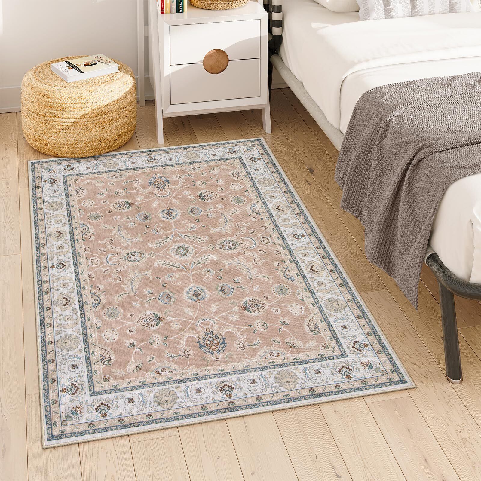 HAOCOO ラグ カーペット 1畳 洗える 120х160cm ラグマット オールシーズン適用 ペルシャ風 じゅうたん 滑り止め ホットカーペット対応 防音 寝室 ラグ 耐磨耗性 軽量 花柄 コーラルピンク | yankees