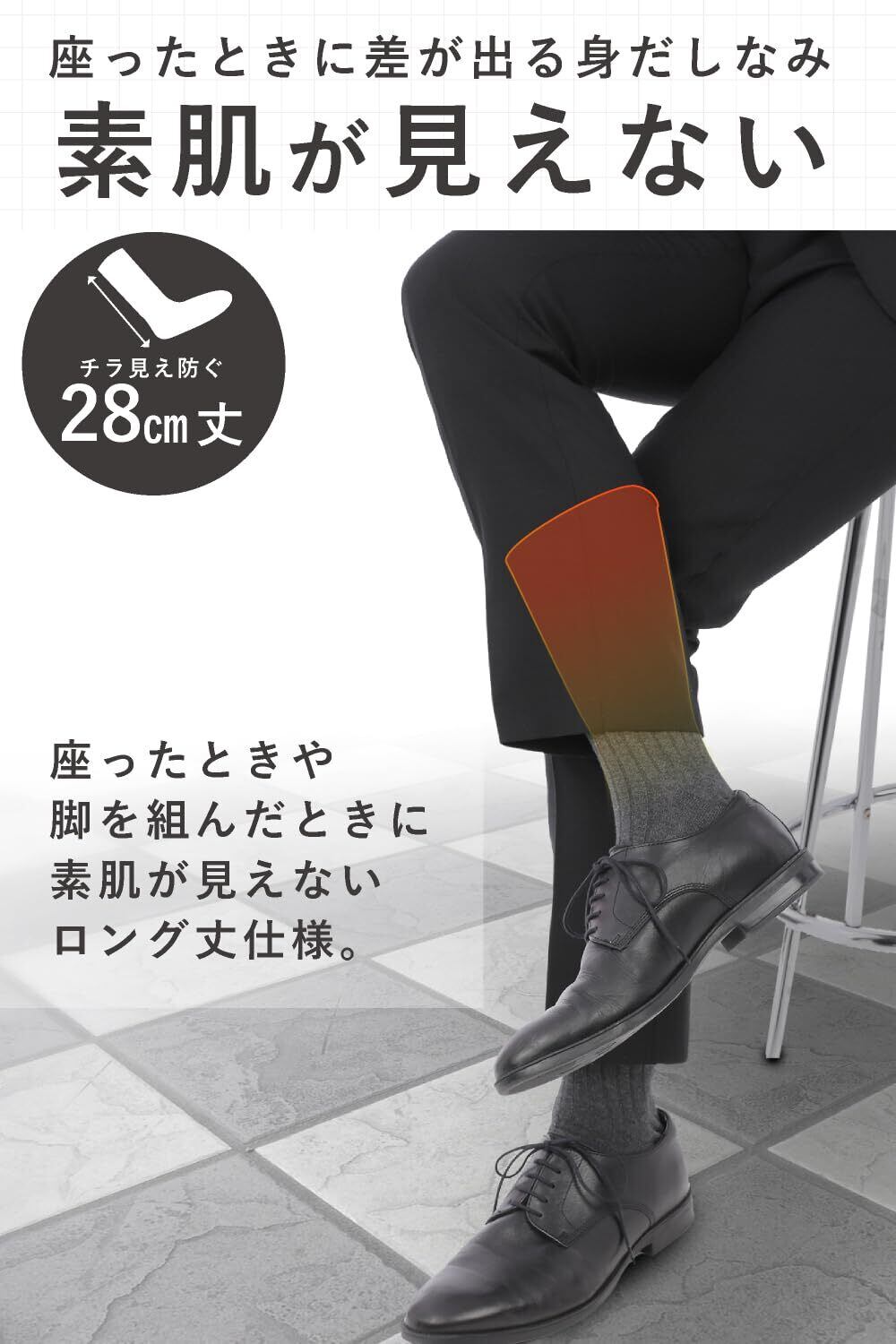 座った時に素肌が見えないサイズ感 座った際の素肌チラ見えを防ぐ28㎝丈を採用、