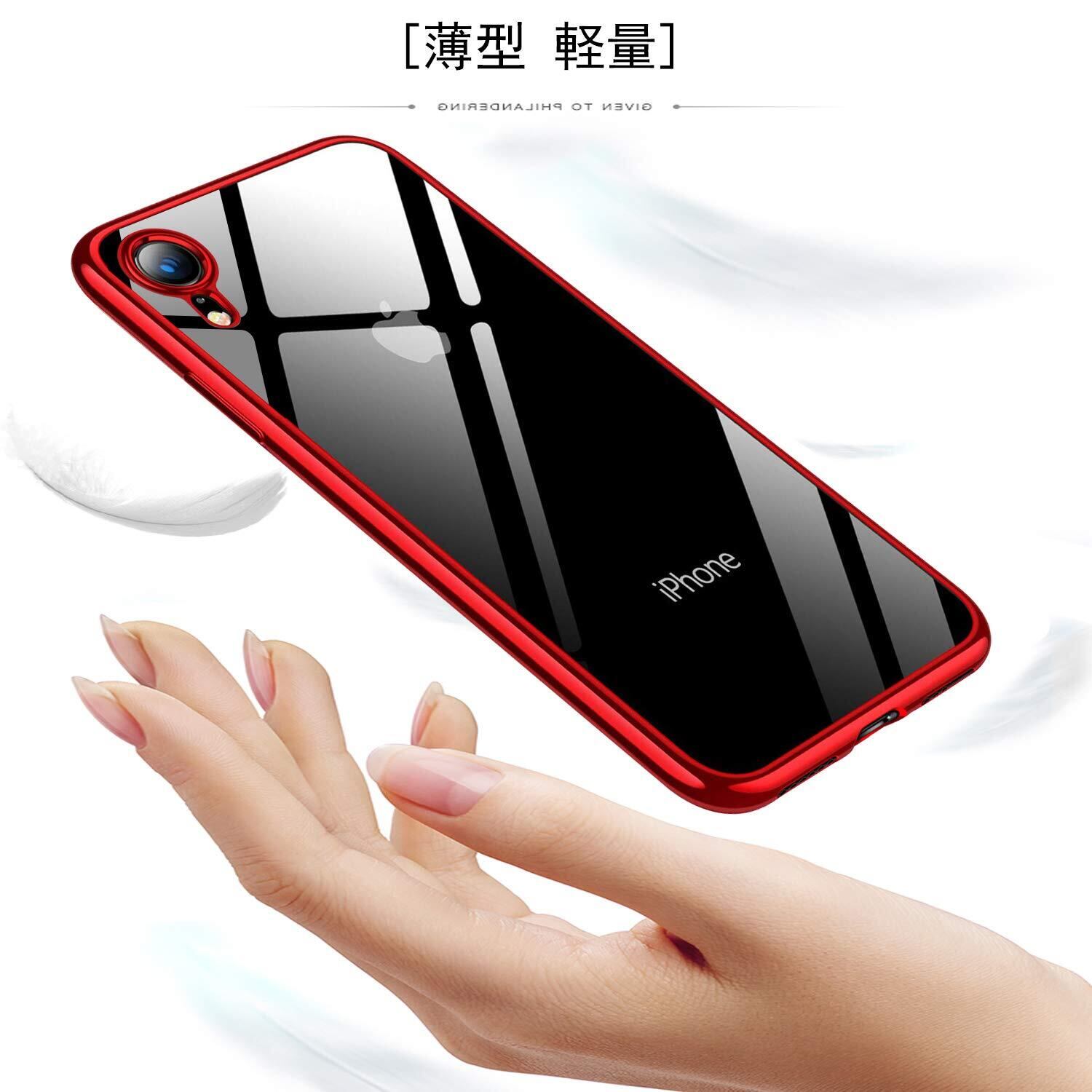 Fanmingsidi XR 用 ケース クリア 透明 tpu シリコン メッキ加工 スリム 薄型 6.1インチ スマホケース 耐衝撃 黄変防止 一体型 人気 携帯カバー レッド