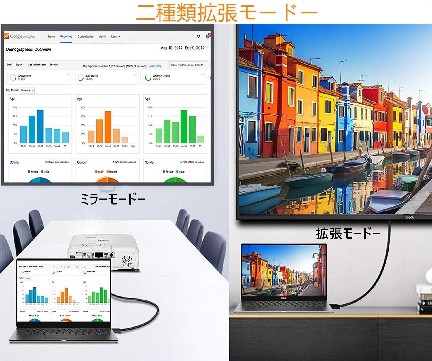 この変換ケーブルは、1080PフルHDに対応しているため、鮮明な映像をお楽しみいただけます。PCやノートパソコンに接続すれば、クリアなグラフィックや滑らかな映像が実現しますので、ゲームや映画視聴などでもその性能を実感できます。