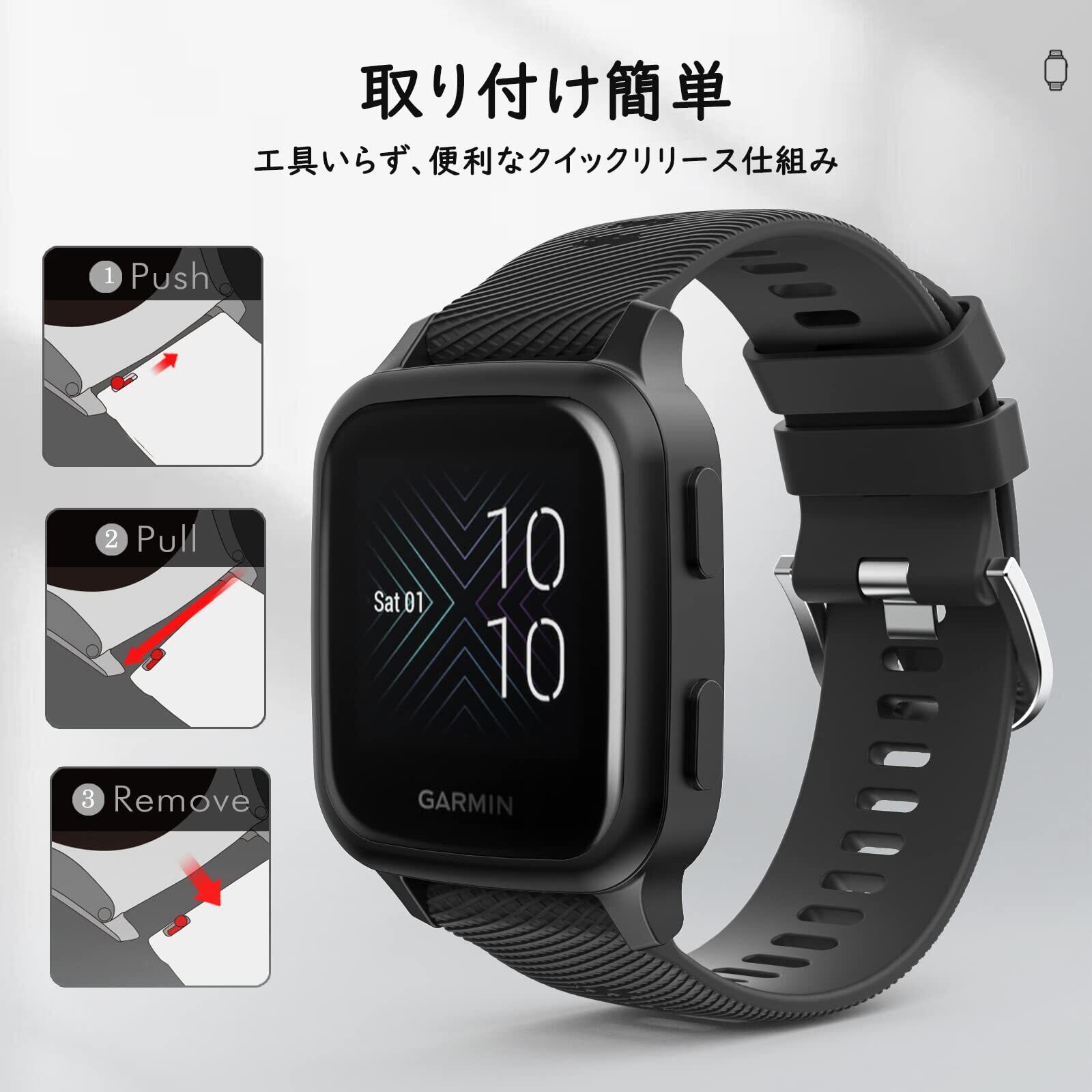 ATiC スマートウォッチバンド 替えベルト 20mm 汎用 スマートウォッチ交換用バンド シリコン製 ガーミン ForeAthlete165/55/158/245/VenuSQ2/Approach S42/Vivoactive5/HuaweiWatch GT3/GalaxyWatch7/WatchFE/AmazfitGTSなどラグ幅20mmのスマートウォッチに対応 Black