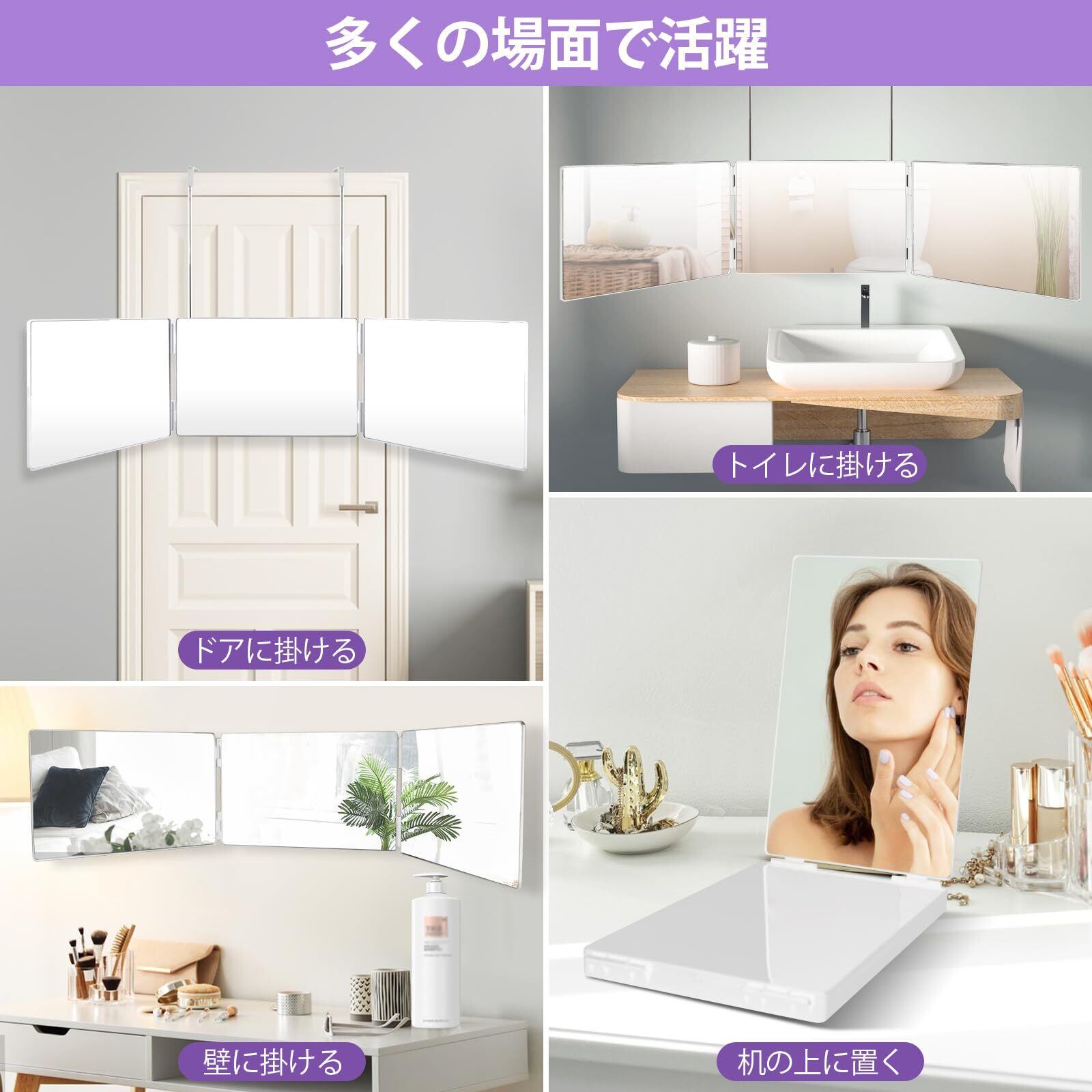 【完璧な角度】三面鏡は、あらゆる角度から頭と顔などを快適に見ることができ、完璧なメイクを作り上げます。広い視野角で盲点を解消し、後頭部を見ることができます。ヘアカット、髪染め、スタイリングなど、この三面鏡はとても重宝します。