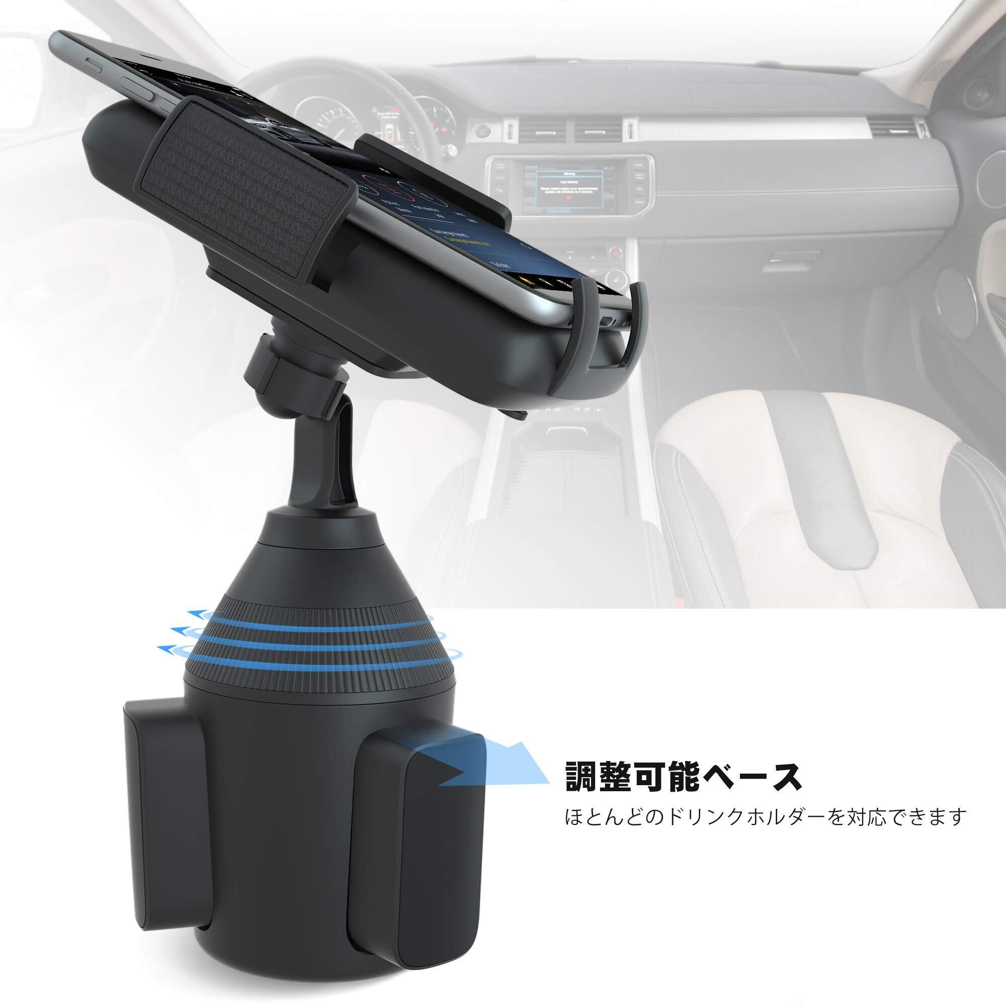 Ocaatech スマホ用車載ホルダー ドリンク式携帯ホルダー スマホホルダー スタンド携帯ホルダー 柔軟なアーム 取り付け簡単/360度回転可能/片手操作/多機種対応(ブラック)