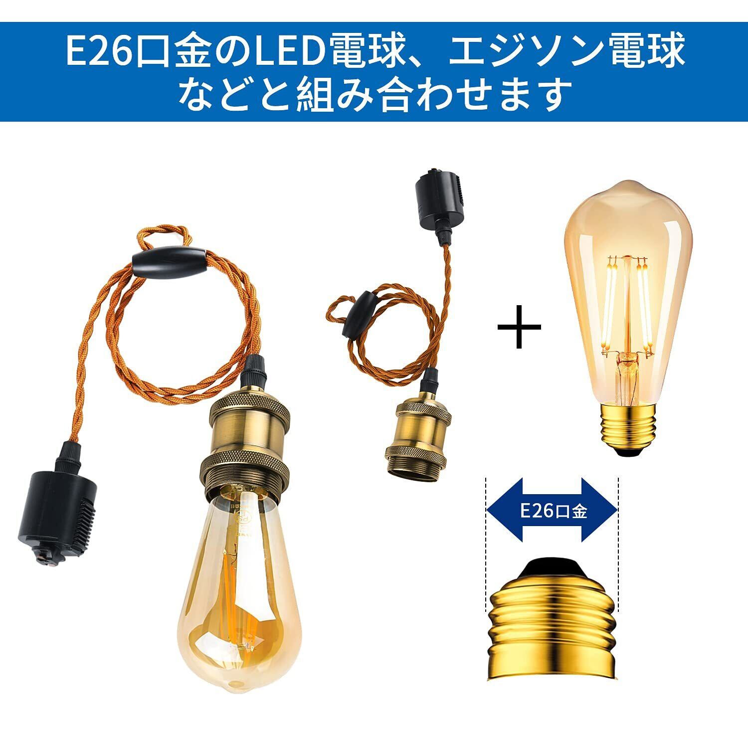 LVWIT ペンダントライト 電球ソケット E26口金 ペンダントソケット ダクトレール用ソケット ライティングレール 裸電球用 LED対応 吊り下げ コードアジャスター付き 100cm調節可能 電球別売り 2個入