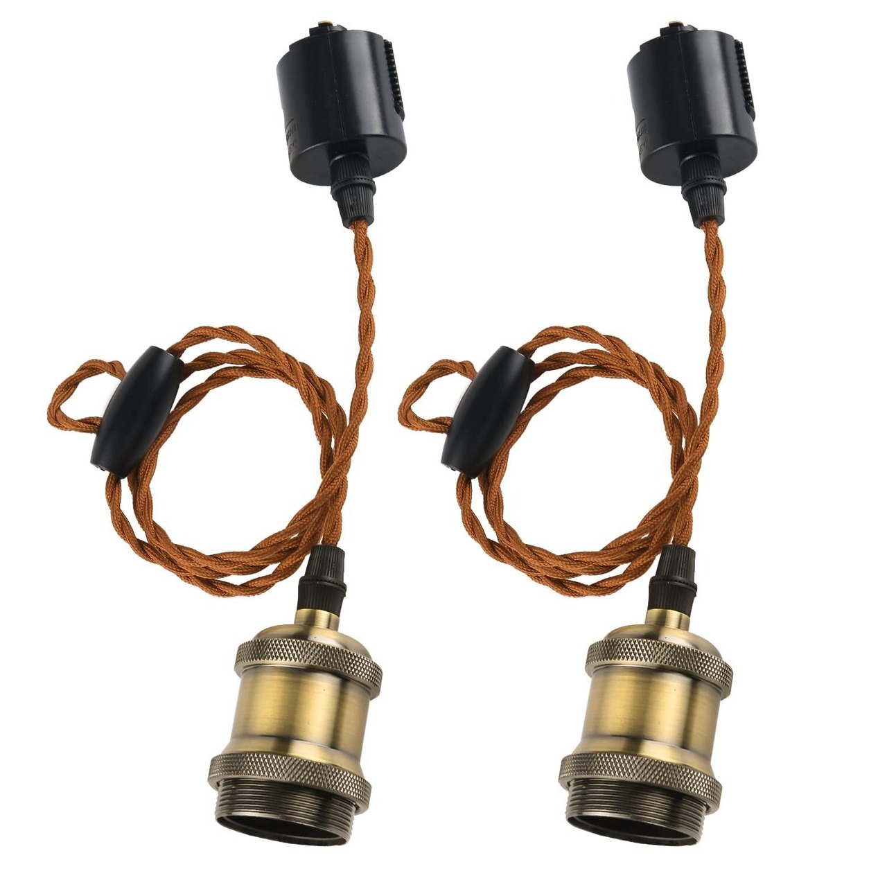 LVWIT ペンダントライト 電球ソケット E26口金 ペンダントソケット ダクトレール用ソケット ライティングレール 裸電球用 LED対応 吊り下げ コードアジャスター付き 100cm調節可能 電球別売り 2個入 | yankees