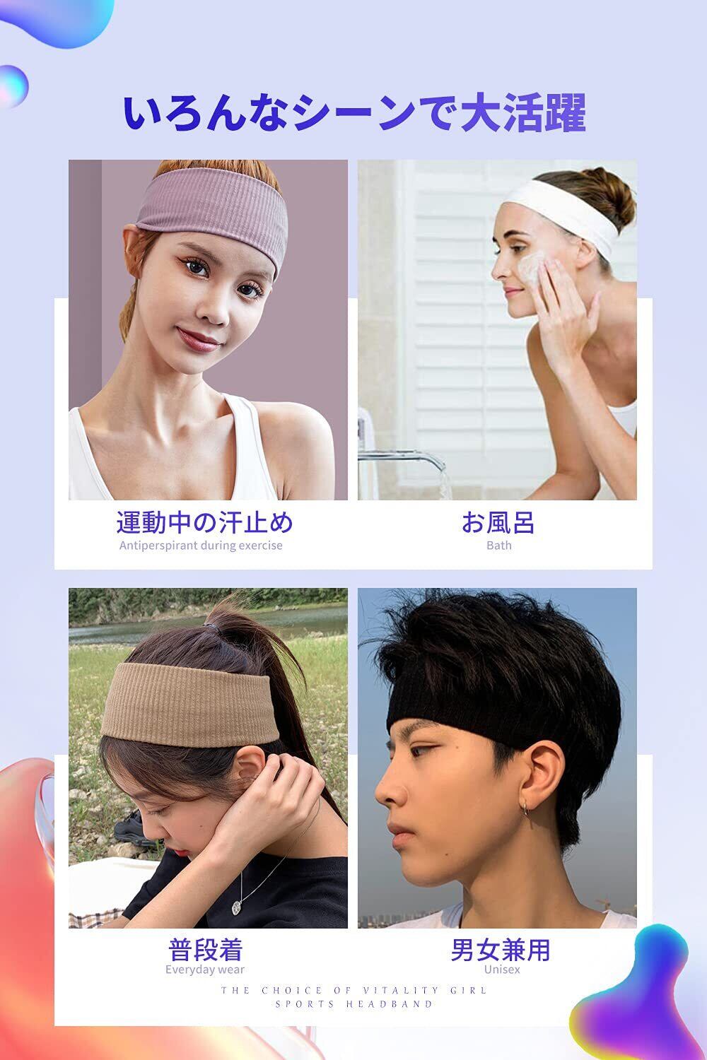 ヘッドバンド 汗止め ヘアバンド【吸汗速乾 肌触りが柔らかい・伸縮性 蒸れない】 抗菌防臭 ヘアターバン スポーツ用 洗顔用 幅広 通気性 無地 薄型 軽量 髪留めらかい ランニング ダンス ヨガ ジョギング 男女兼用