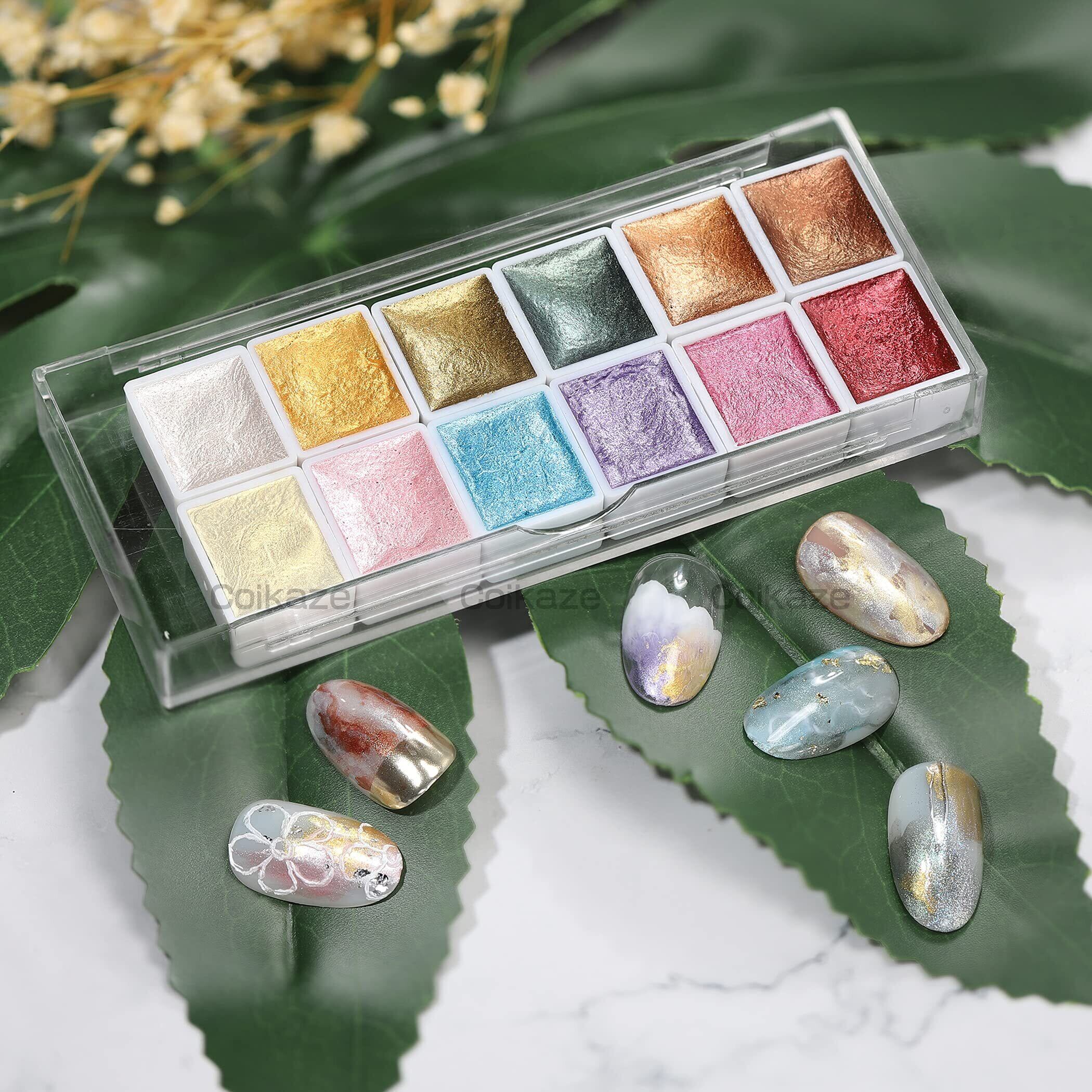 ジェルネイル 水彩パレット ネイル アート 全12種 ニュアンスネイル 水彩ネイル coikaze マーブルネイル 水彩アート たらしこみアート たらしこみネイル メタリックネイル