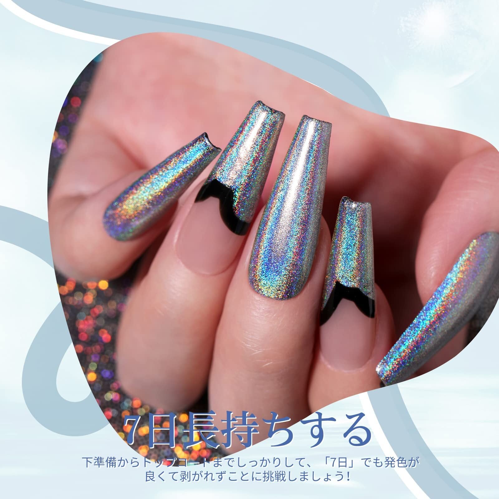 微粒子のラメとホロが散りばめられており、塗るたびに絶妙な輝きを放ちます。これにより、デザインの幅が広がり、アートネイルやグラデーションの仕上がりも美しく仕上がります。