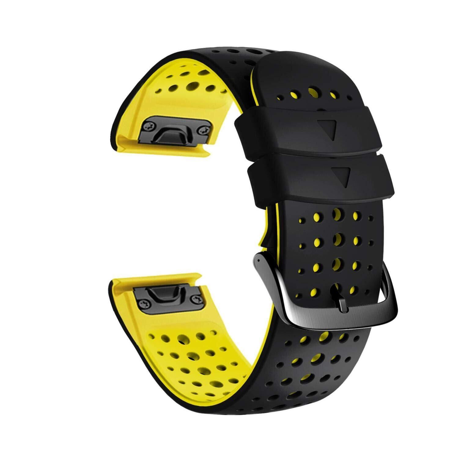 Ahayo QuickFit 22mm 替えバンド for GARMIN(ガーミン) Instinct 2 バンド 留め金具の多空気穴通気性 シリコン スポーツ バンド アップ対応GARMIN(ガーミン) Fenix 7/ EPIX 2 / Fenix 6/Fenix 5/Approach S62/Forerunner 955 965(黒と黄色) | yankees