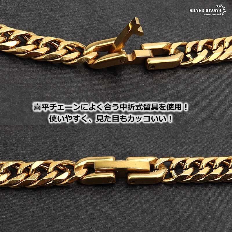 特徴: 6面カット、ダブル喜平デザイン、ステンレス製、ゴールド/シルバー選択可能