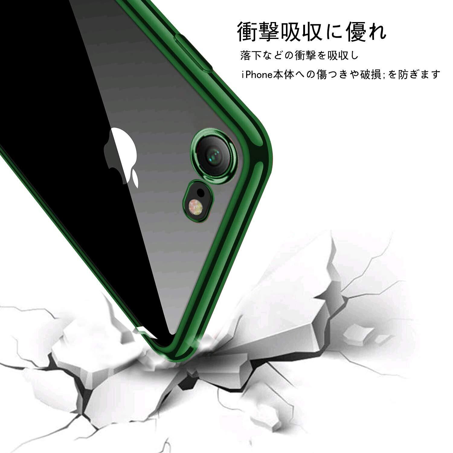 iPhone SE3 ケース iPhone SE ケース 第2世代 iPhone8 ケース iPhone7 ケース2022年新型 クリア 透明 tpu シリコン メッキ加工 スリム 薄型 4.7インチ スマホケース 耐衝撃 黄変防止 一体型 人気 携帯カバー ダークグリーン