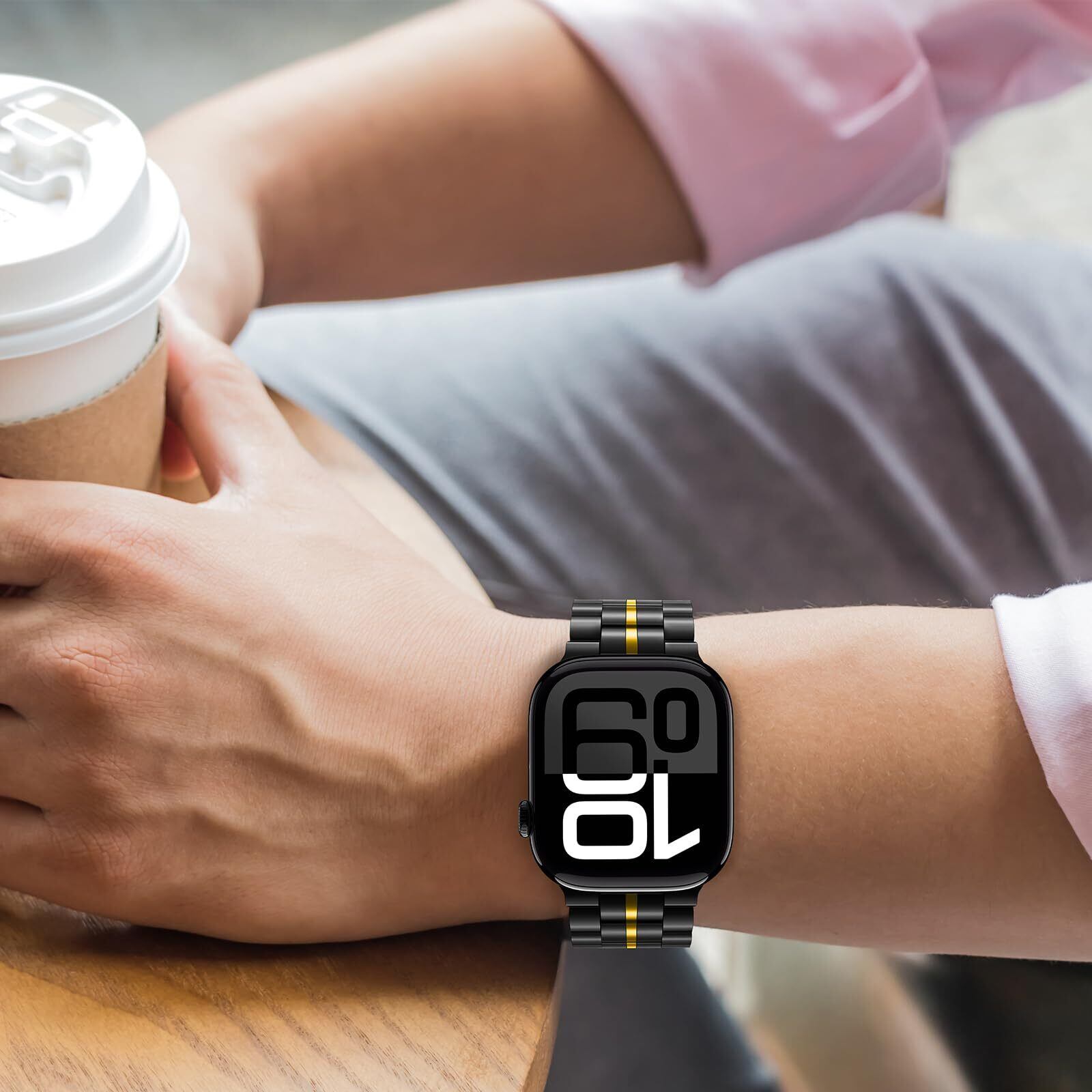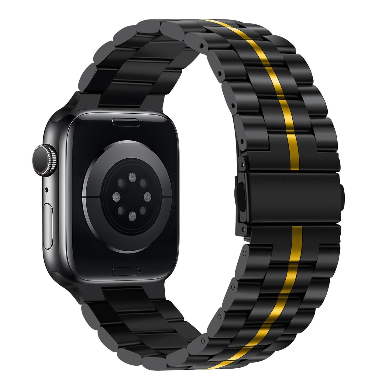 ●コンパチブル Apple Watch バンド 49mm 46mm 45mm 44mm 42mm プレミアムステンレススチールメタル交換バンド Apple Watch Ultra (49mm) シリーズ10 (46mm) シリーズ 9 / 8 / 7 (45mm) SE シリーズ6 シリーズ5 / 4 (44mm) シリーズ3 / 2 / 1 (42mm) 用 (ブラック-ゴールド)