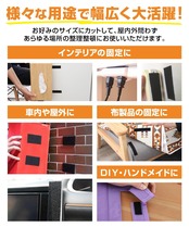 手芸、家庭での整理整頓、各種工作、車のパーツの固定など、使い方は無限大!あなたの創造力をかき立てるアイテムです。特に、車内のアイテムを固定する際にも重宝します。