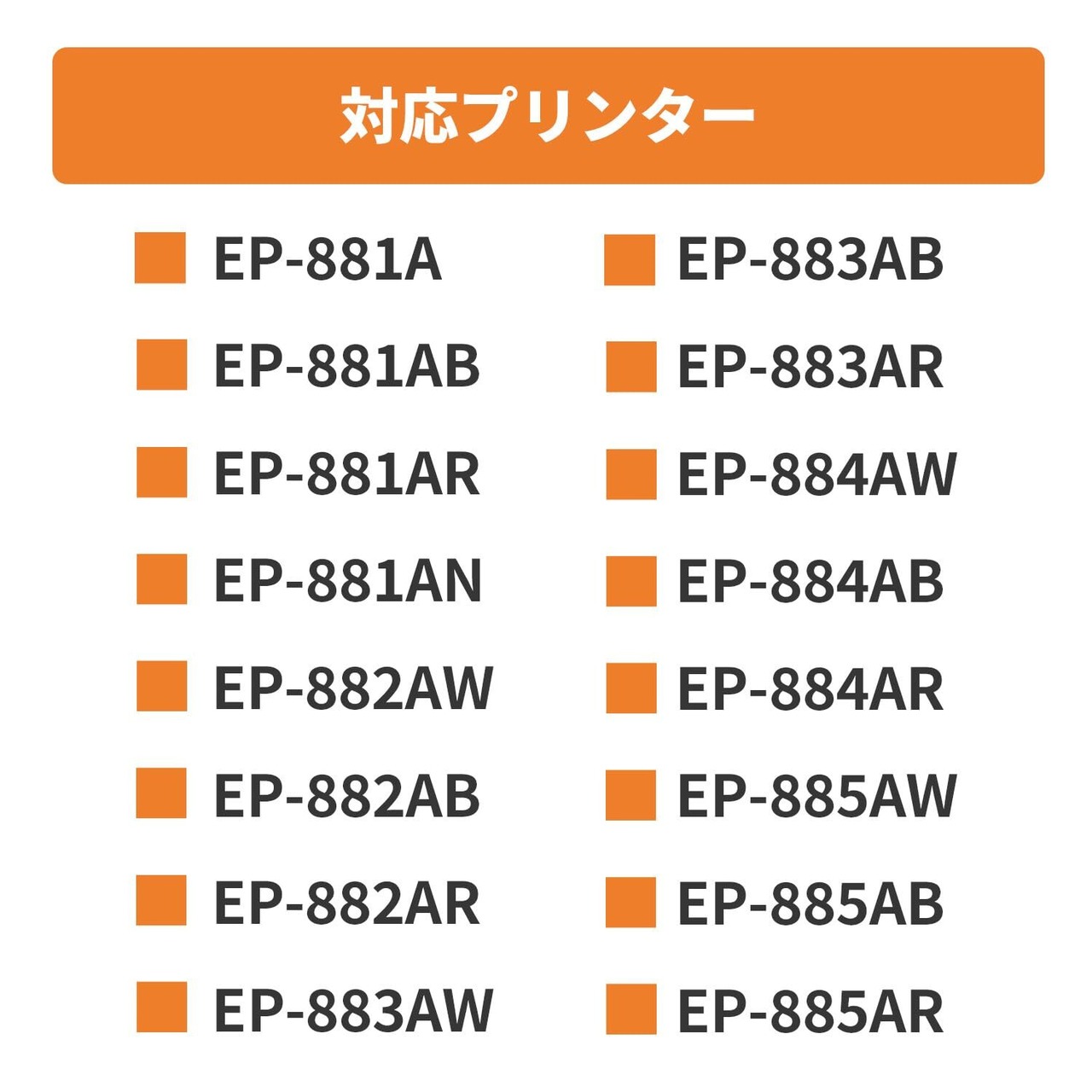 EP-881A、EP-882A、EP-883A、EP-884A、EP-885A、EP-886Aなど、さまざまなエプソンプリンターに対応しています。あなたのプリンターにぴったりフィットし、パフォーマンスを最大限に発揮します!