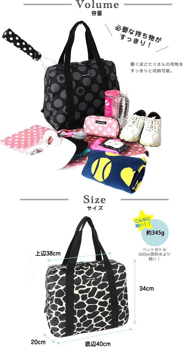 ●ハンナフラ(Hanna Hula) ジムトートバッグ 超軽量 大容量 ラケット2本収納ポケット 撥水