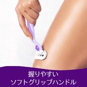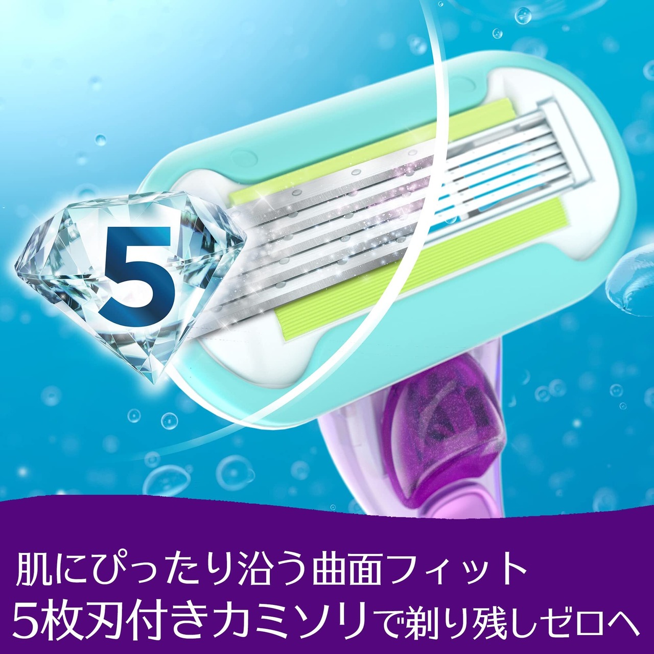 特徴: 5枚刃カミソリ、保湿用ジェルストリップ、スタイリッシュなパープル色