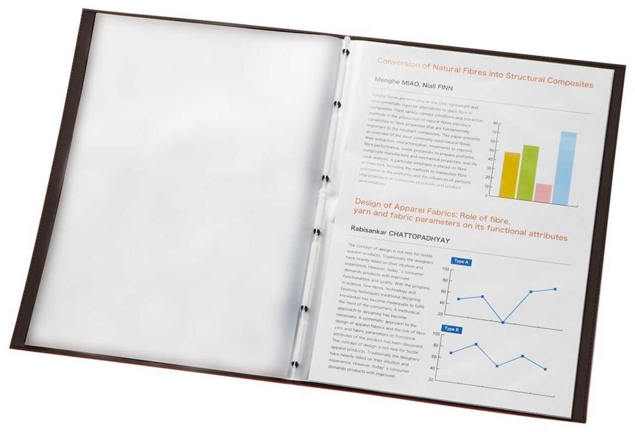 上質な合皮素材を使用した外観で、高級感あふれる仕上がりとなっています。ブラウンカラーは、どんな書類とも相性が良く、シックな雰囲気を演出します。大切な書類をしっかりと保護しながら、エレガントに管理できます!