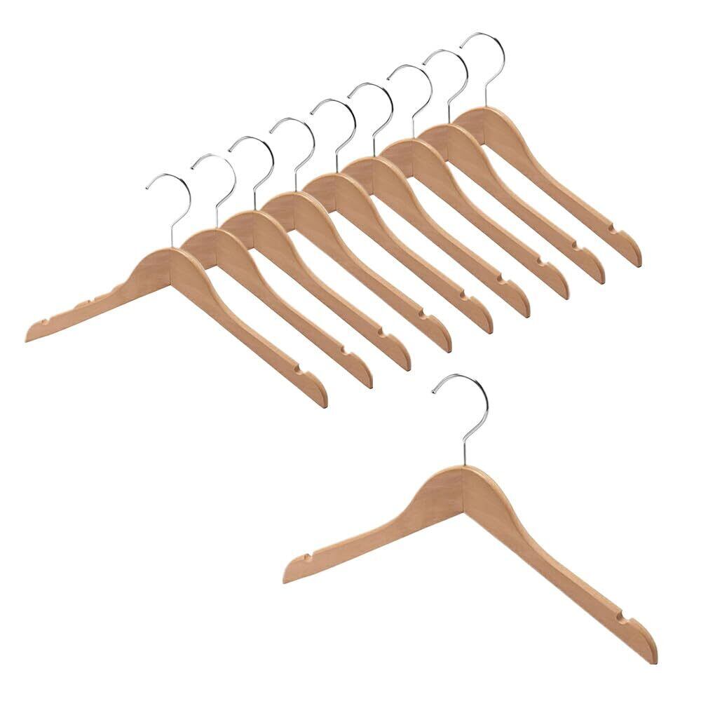 ●【タマトシ】木製 ハンガー 360度回転 シャツ ジャケット 天然 高級 木 コート 着物 おしゃれ 店舗 収納 スリム レディース 38cm幅 10本組 クリア
