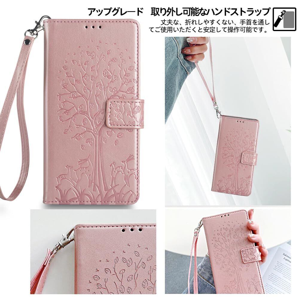 特徴: 手帳型、カード収納3枚、レザー製、スタンド機能、ストラップ付き、耐衝撃、全面保護