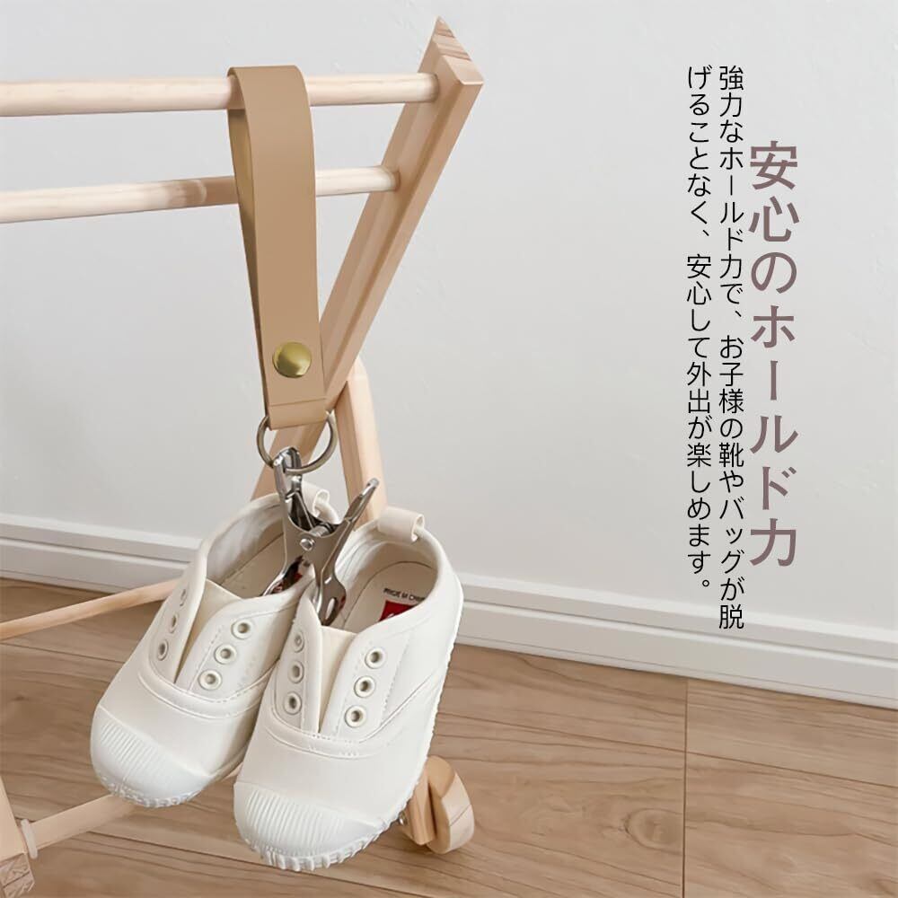 本商品はベビーカーに簡単に吊り下げられる設計で、お子様の靴や小物をしっかりと固定できます。移動中も安心して、心機一転、快適なお出かけを楽しむことができます。「※ご使用中に気になる点がございましたら、いつでもお気軽にお問合せください。」
