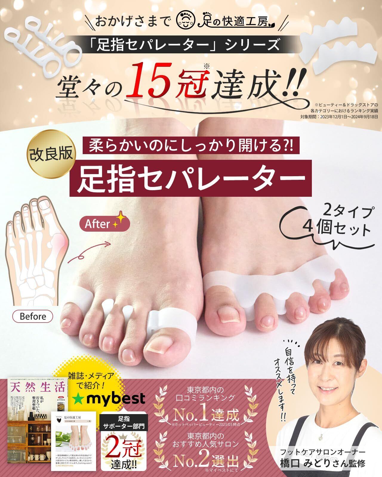 【フットサロン監修】全指セパレーター《2種類セット》足指セパレーター 足指 広げる 足の指を広げるグッズ 足指をまもる足指サポーター 足指ストレッチ フットケア 寝指 浮き指 巻き爪 オリジナル説明書付属 (22~26cm)[足の快適工房]