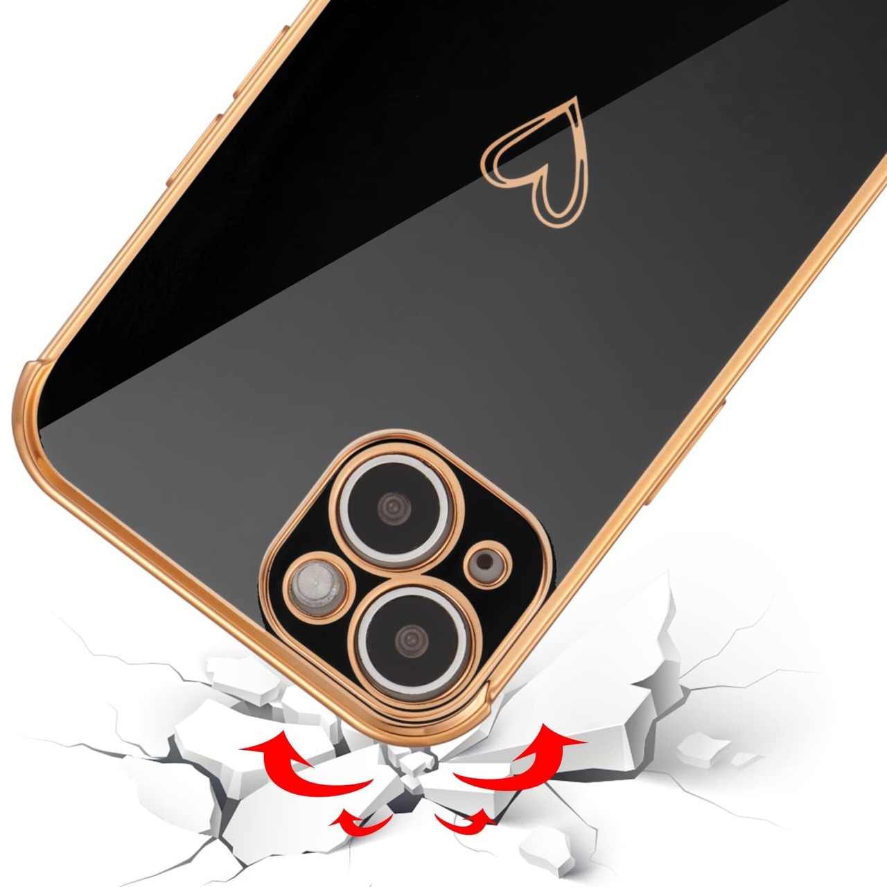●ZTOFERA iPhone 15 Plus 用 ハートケース iPhone 15 Plus ケース 柔軟な TPU シリコン スマホケース メッキ加工 ソフト 軽量 耐衝撃 おしゃれ 韓国 可愛い アイフォン 15 Plus ケース 女子 女性 心パターン 携帯電話カバー ワイヤレス充電対応 (ブラック)