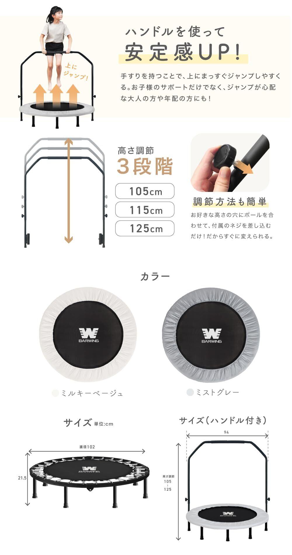 「BARWING トランポリン」をご覧ください!このトランポリンは、家族全員で楽しめるエンターテイメント性とフィットネス効果を兼ね備えた優れた製品です。
