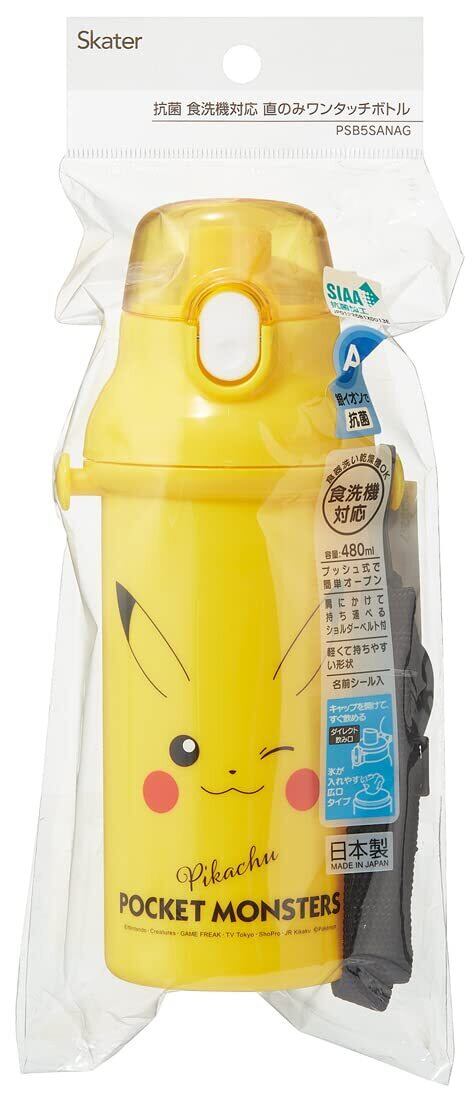 スケーター(Skater) 子供用 プラスチック 水筒 480ml ワンプッシュ開閉 抗菌 子供に優しい 軽量 抗菌加工 日本製 ポケモン ピカチュウ フェイス 23 PSB5SANAG