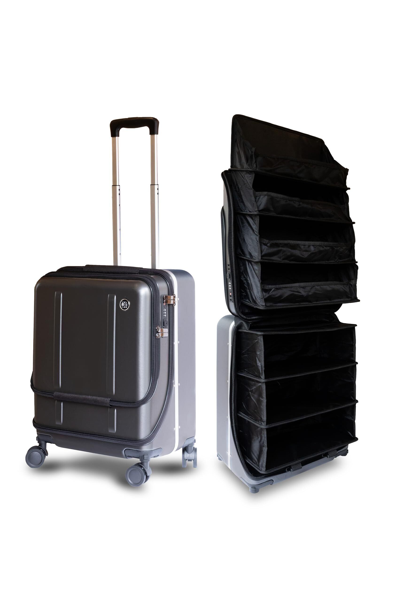 「[EDISON LAB] 棚になるスーツケース」をご覧ください!このスーツケースは、ビジネス旅行や旅行シーンでの快適さと便利さを追求した必須アイテムです。