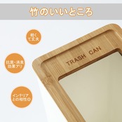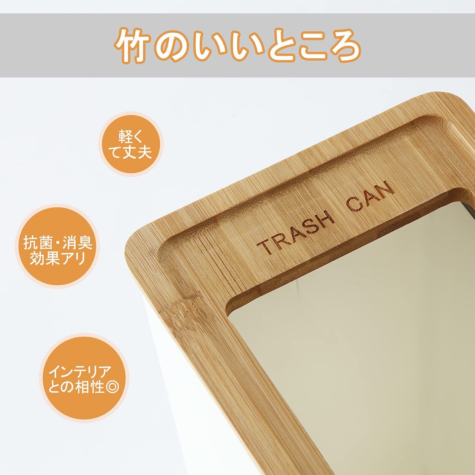【竹製のフタ付き】竹製のきれいなフタがさりげないアクセントに、フタは載せるだけ。竹の特徴は抗菌性・防臭性に優れて、臭いや菌の繁殖を抑えて衛生的に使えます。ゴミの投入口は11.6×15cmがあります、手が汚れていたり、両手がふさがっている時でもフタを開ける手間がかからないので便利なゴミ箱です。