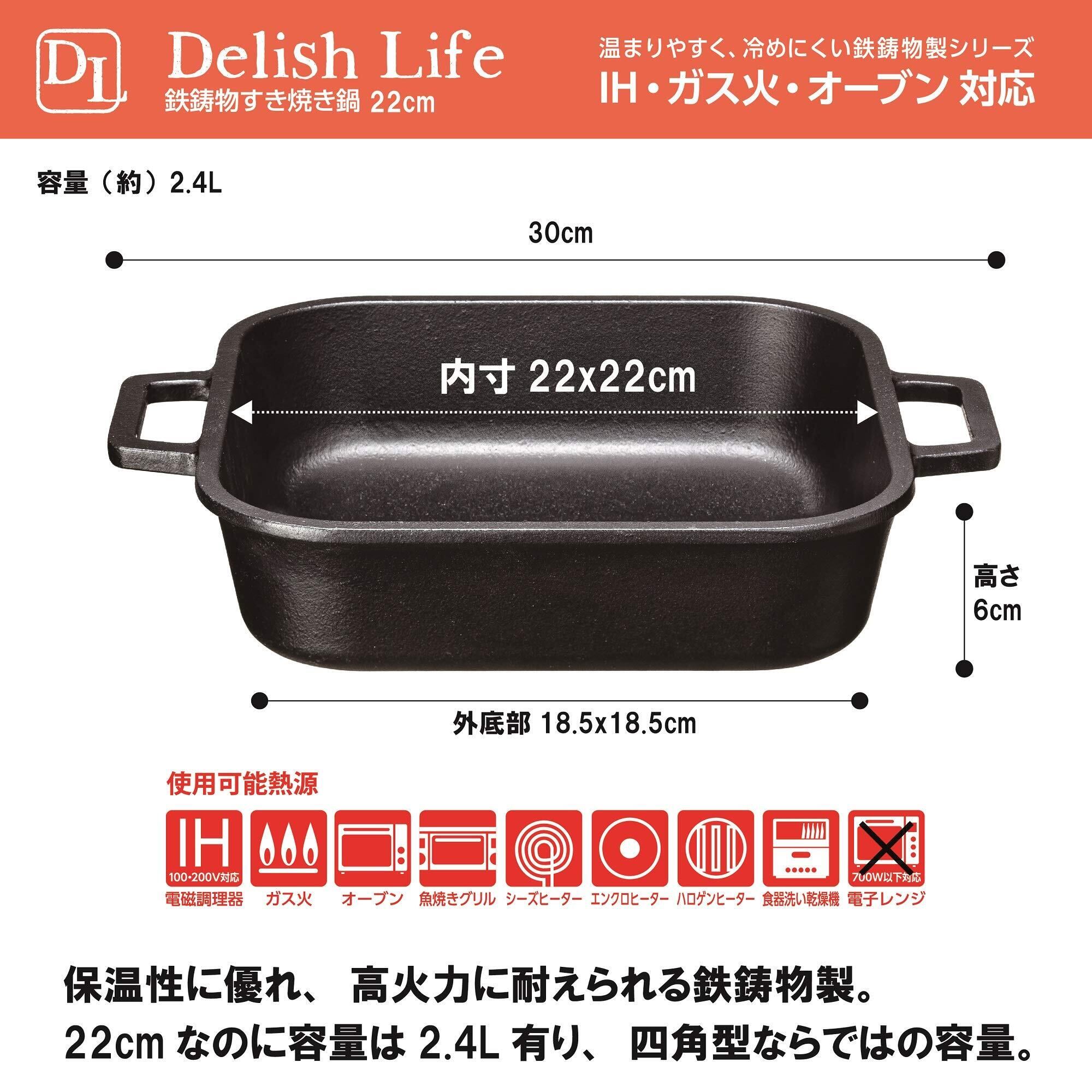 ●イシガキ産業 イシガキ 鉄鋳物 すき焼き鍋 22cm 約幅30×奥行23.5×高さ6cm 容量2.4L デリッシュ・ライフ スクエア IH 直火 対応可