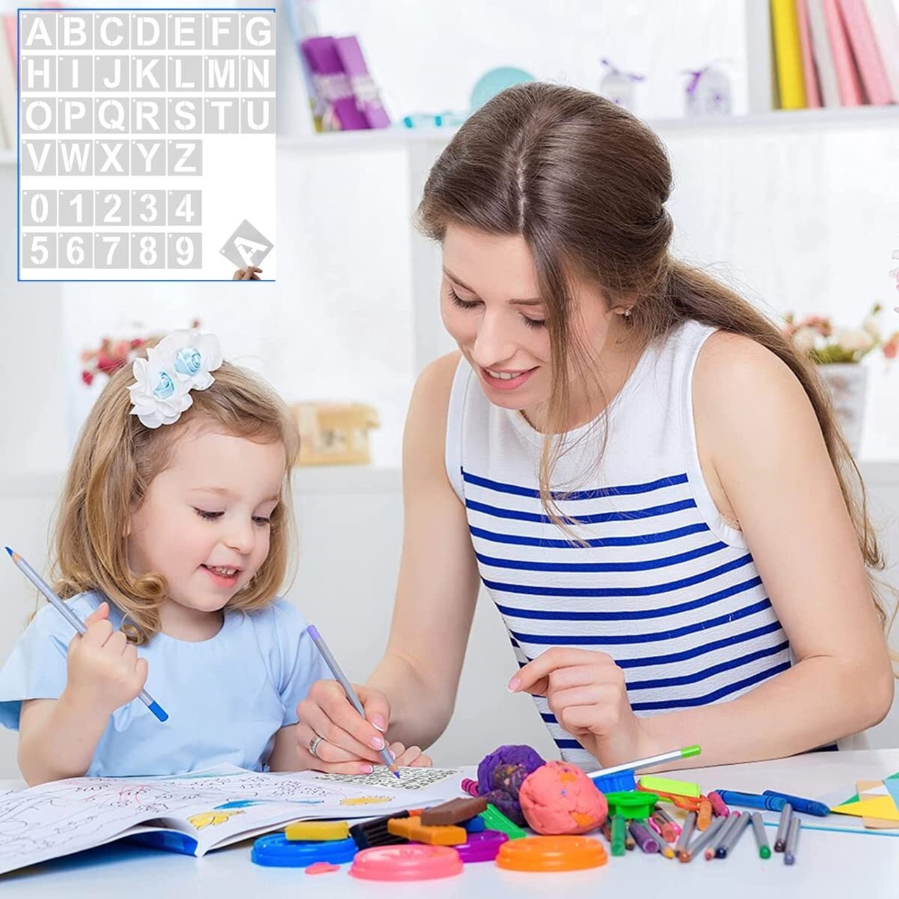 4.【大容量】アルファベットと数字の組み合わせセット、大文字AからZまでの26個のアルファベットと0から9までの10個の数字テンプレートがいっぱい揃えています。