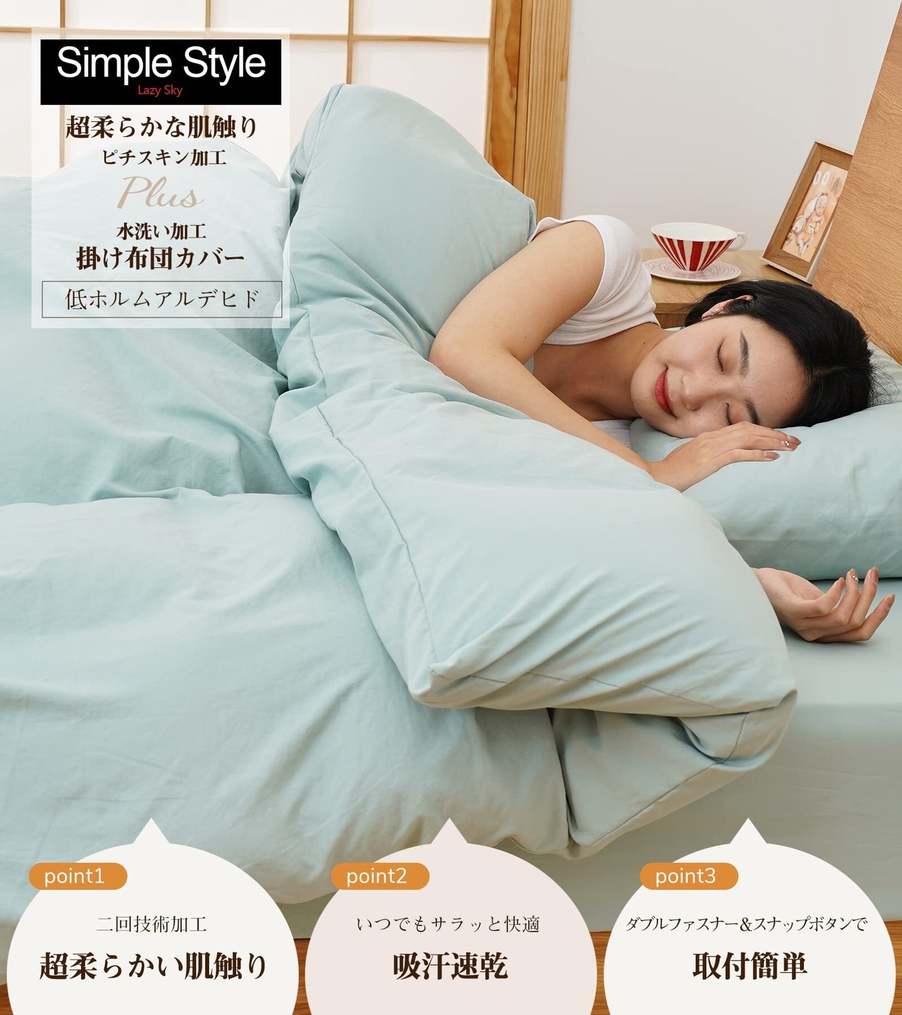 【お客様へ】弊社はお客様により良い掛けふとんカバーを提供するため、高密度の生地を採用しました。更に、水洗い加工で圧倒的な柔らかさを感じられる商品です。弊社はアマゾンに認証された日本企業です。弊社の掛け布団カバーは日本国内で企画・デザインを行い、日本の品質基準をクリアした実績のある工場で作られており、商品に自信を持っております。品質にもこだわりたいという方にも安心のLAZY SKY品質です。万が一商品に不具合がある場合、いつでもお気軽にお問い合わせください。