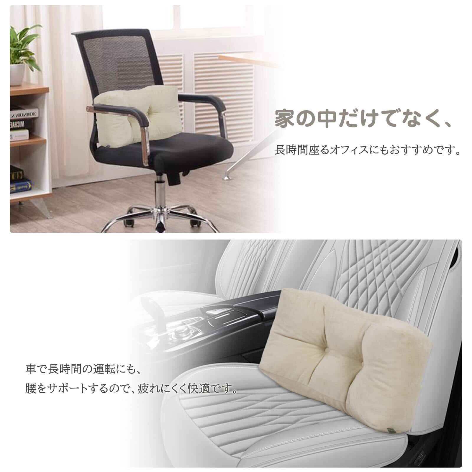 この腰枕は、自宅での使用はもちろん、オフィスでのデスクワークや車でのドライブでも活躍します。移動中も快適な座り心地を実現し、腰への負担を軽減します。