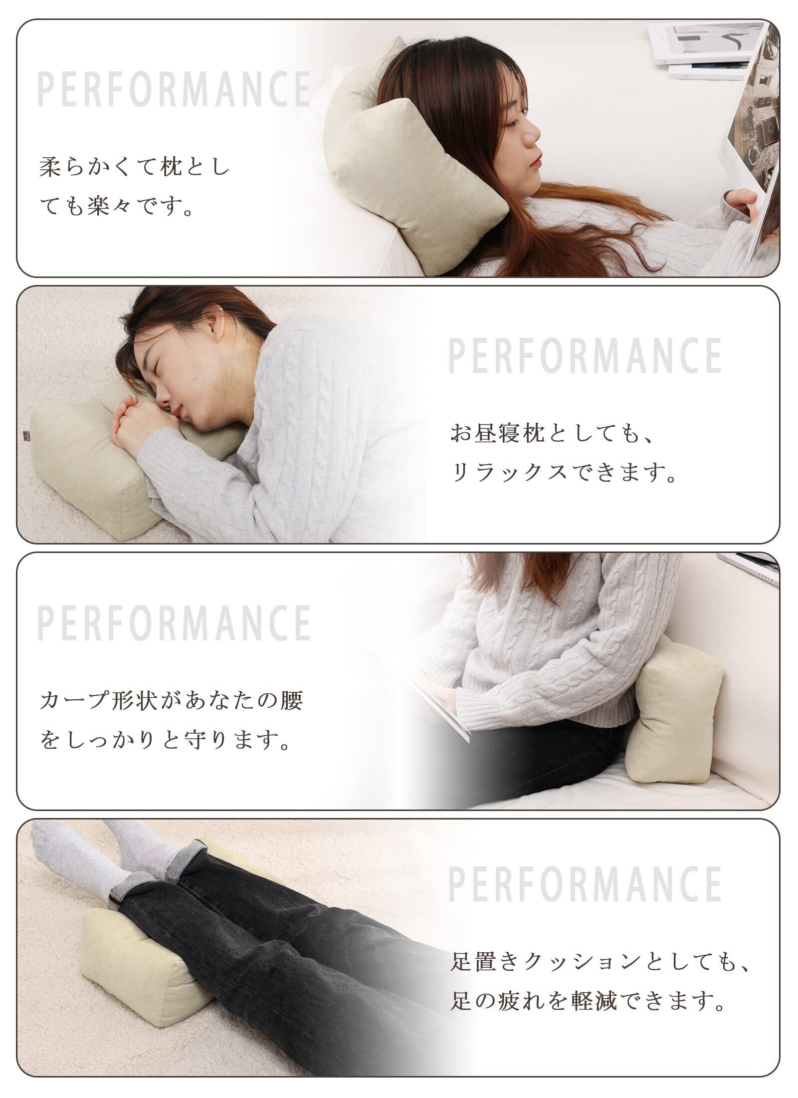 寝る時にも使えるこの枕は、腰を支えて安眠を促進。夜も快適な睡眠環境を提供し、よりリラックスした時間を楽しむことができます。優れた弾力性を搭載し、体にフィットします。