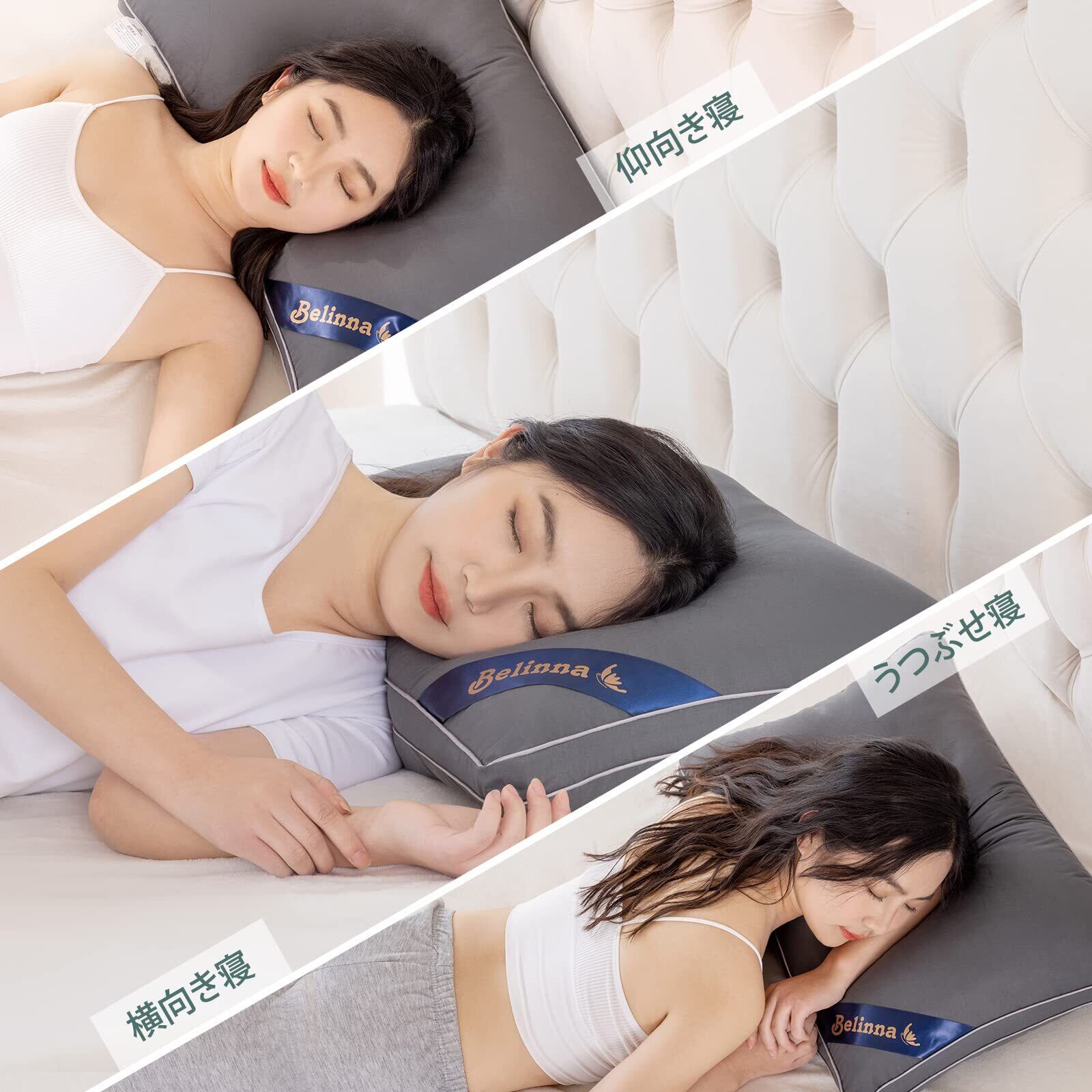【首が痛くならない】柔らかさと支持力のバランスが良く取られ、身体の曲線に合わせて姿勢を保つことができます。Belinna枕を使用することで、首、肩、背中の筋肉の緊張を緩和し、快適な睡眠を手に入れることができます。