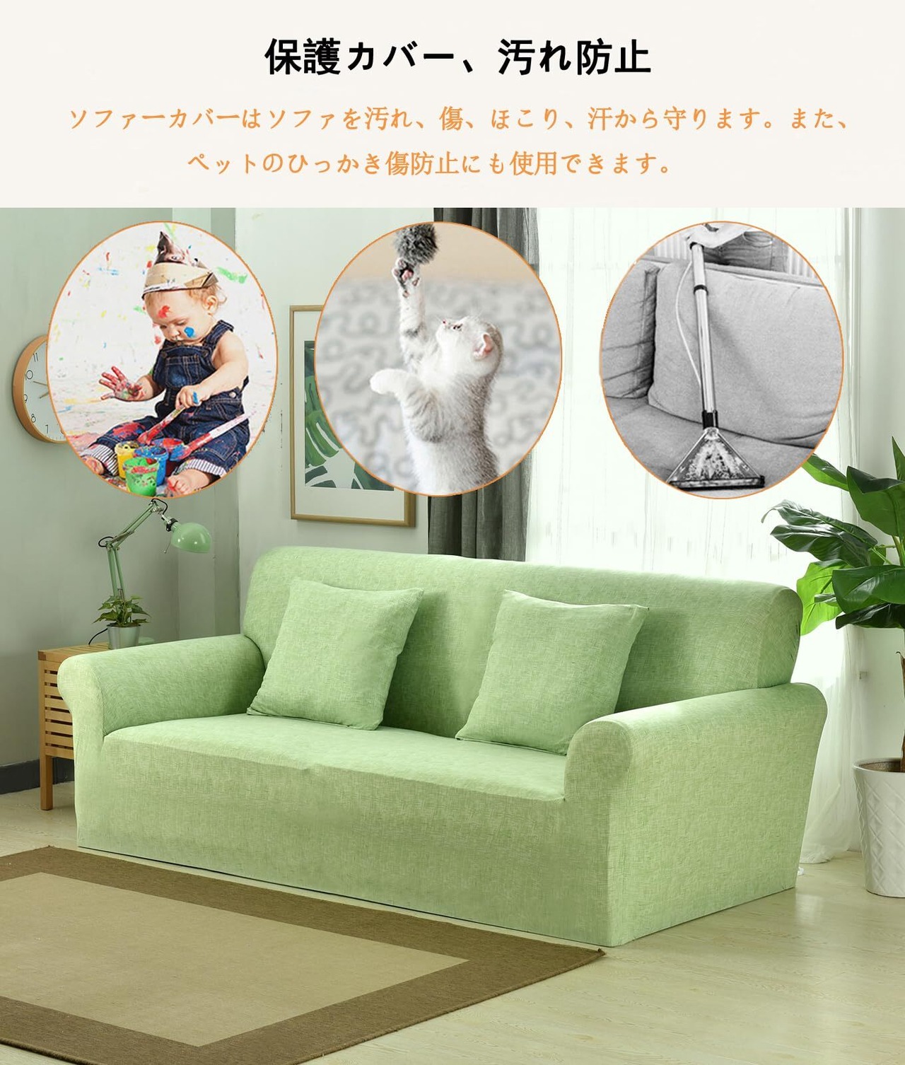 TMVOK ソファーカバー 2 3 4人掛け ストレッチ 北欧風 ソファーカバー 肘付き 滑り止め 柔らかい 伸縮素材 犬 猫 傷 防止 四季兼用 超便利 2人掛け145~185cm (グリーン) | yankees