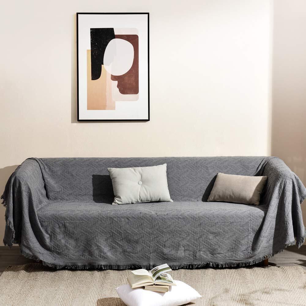 【Amazon.co.jp 限定】クモリ(Kumori) ソファカバー 北欧風 マルチカバー 多機能 ソファーかばー フリンジ付き おしゃれ 1234人掛け 保護カバー ほこり キズ 汚れ防止 洗える 四季通用 グレー・T柄 180×340cm(3~4人掛け) | yankees