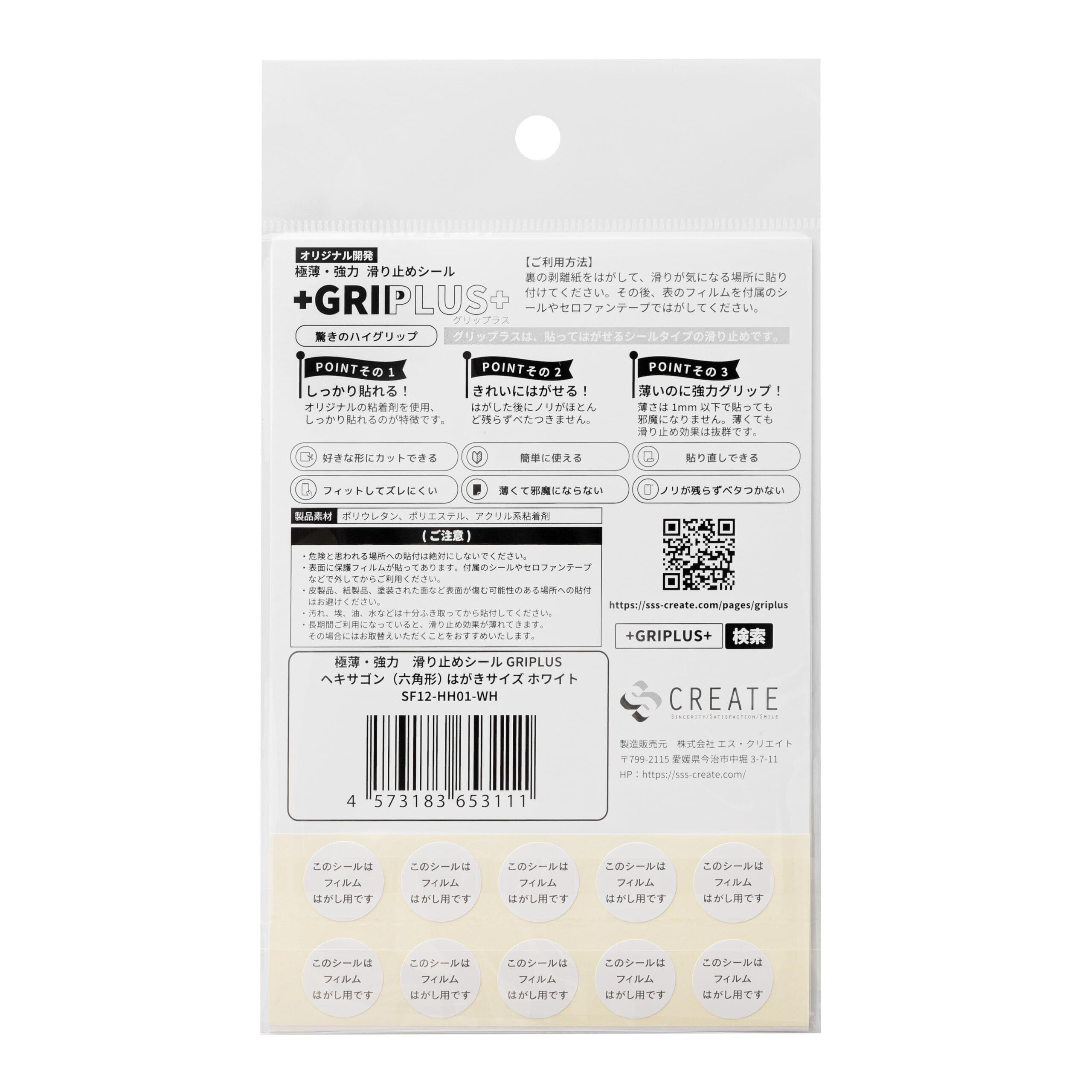 GRIPLUS(グリップラス) 極薄・強力 滑り止めシール GRIPLUS ヘキサゴン(六角形) はがきサイズ (1, ホワイト)
