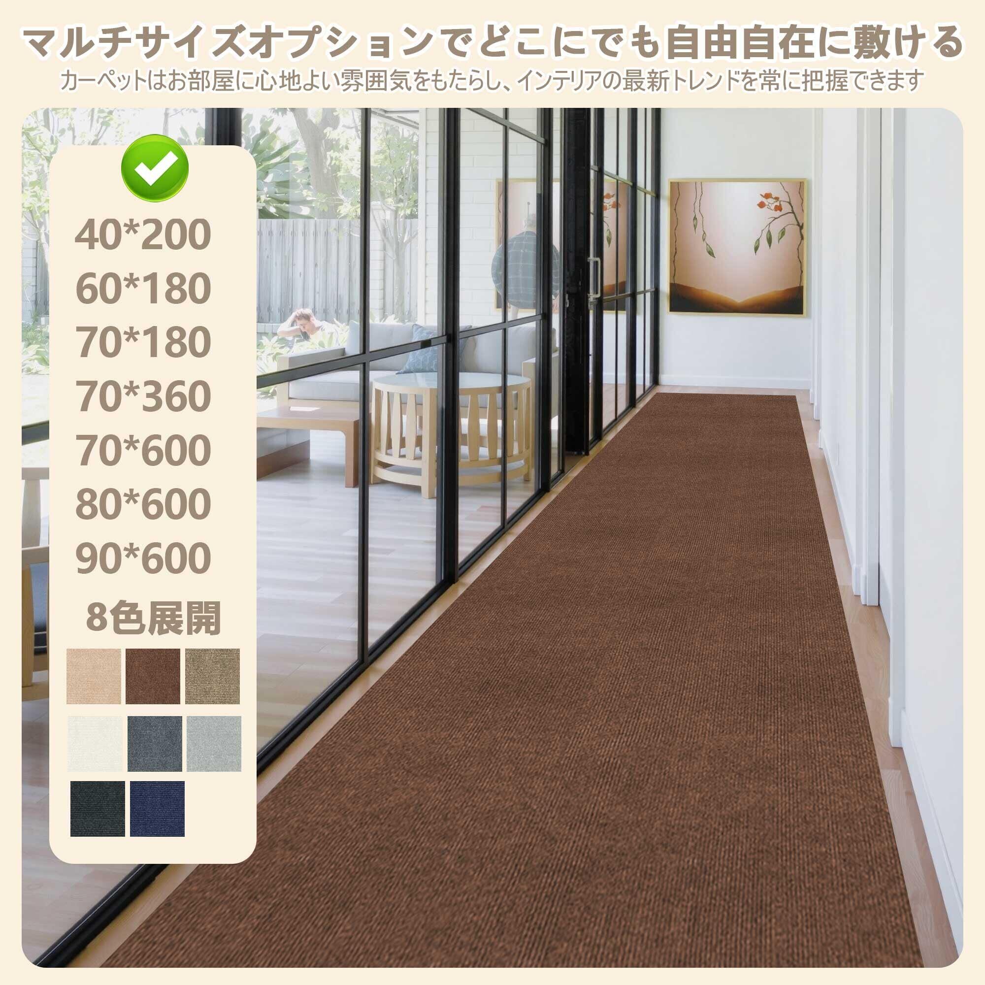 【Amazon 限定ブランド】UOUOMI 廊下敷き・階段マット 防音 ペット カーペット 廊下 マット 吸着 マット 無地のデザイン DIYカッティング 転倒や転倒を防ぐ 老人と子供とペットの友好 キッチン、玄関、リビング、階段などのシーンに共通 【70*600cm】【ブラウン】 | yankees