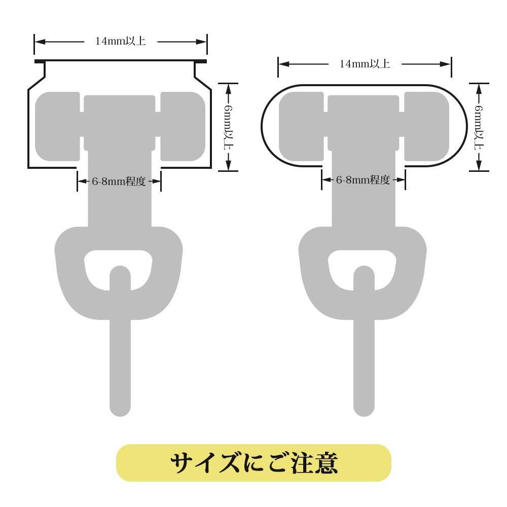 【サイズにご注意】ご購買前に、必ずご使用されるカーテンレールの溝部サイズをご確認下さいませ。レールの溝幅約6-8mm程度対応できます。