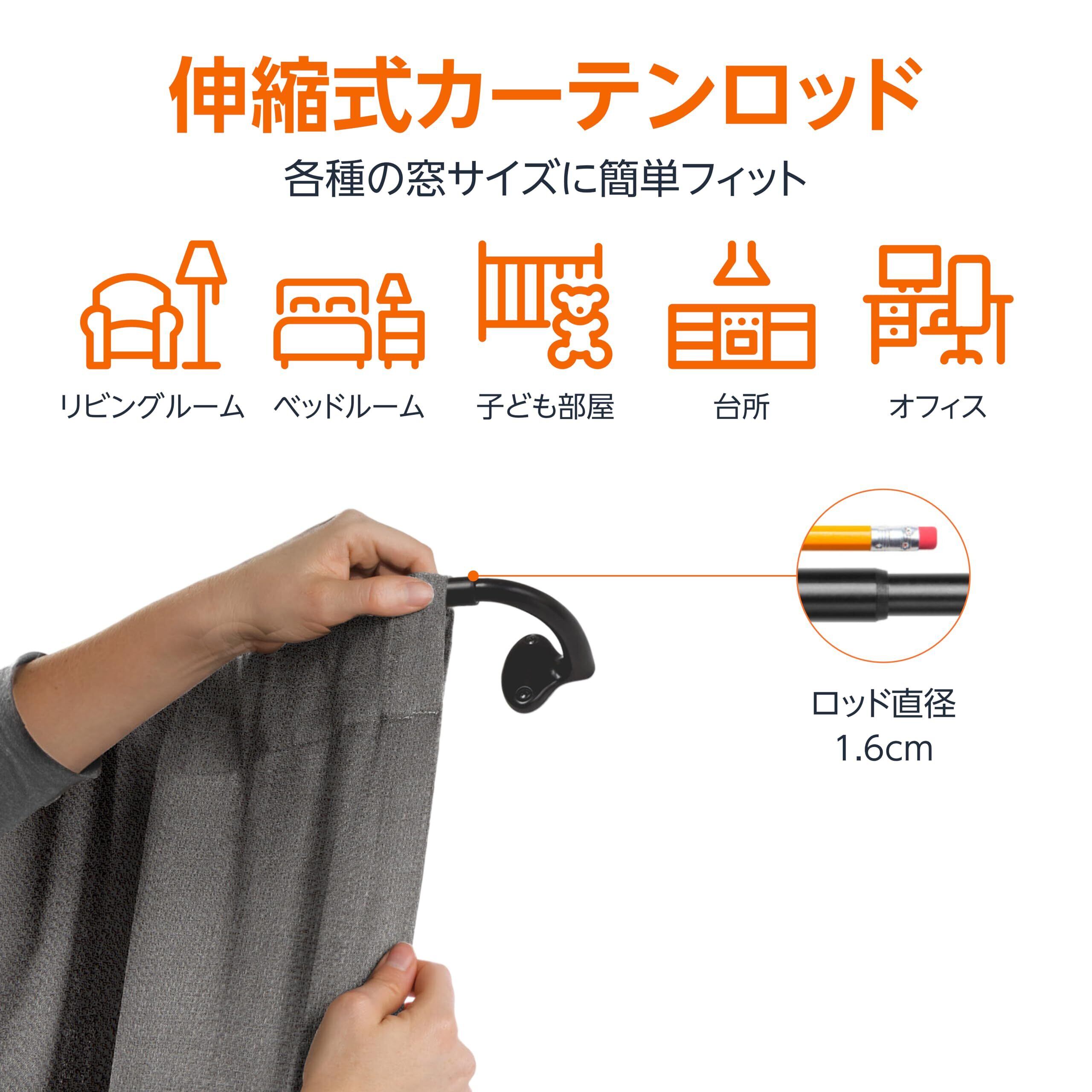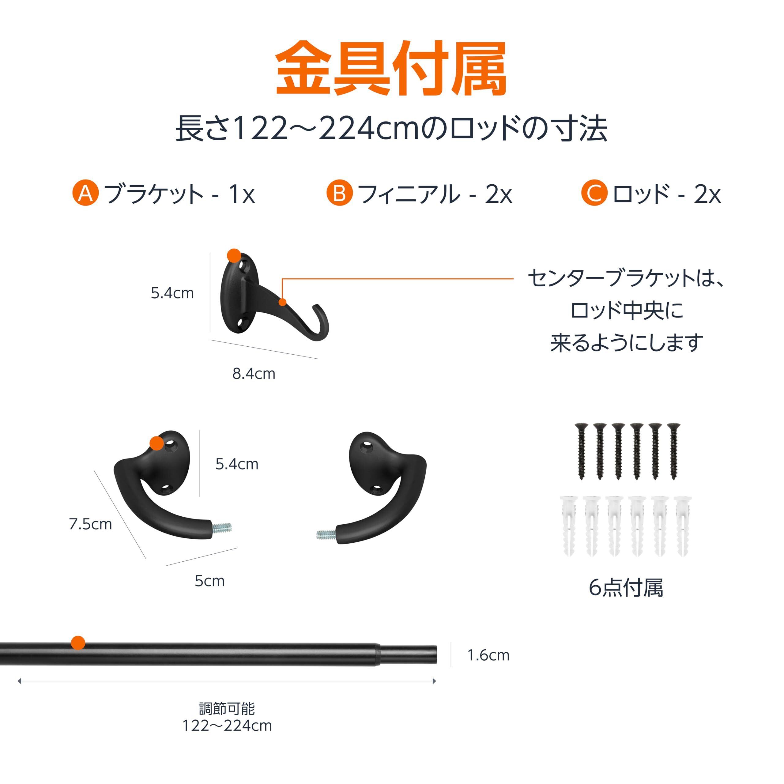 特徴: 遮光カーテン用、調整可能122~224cm、ブラック