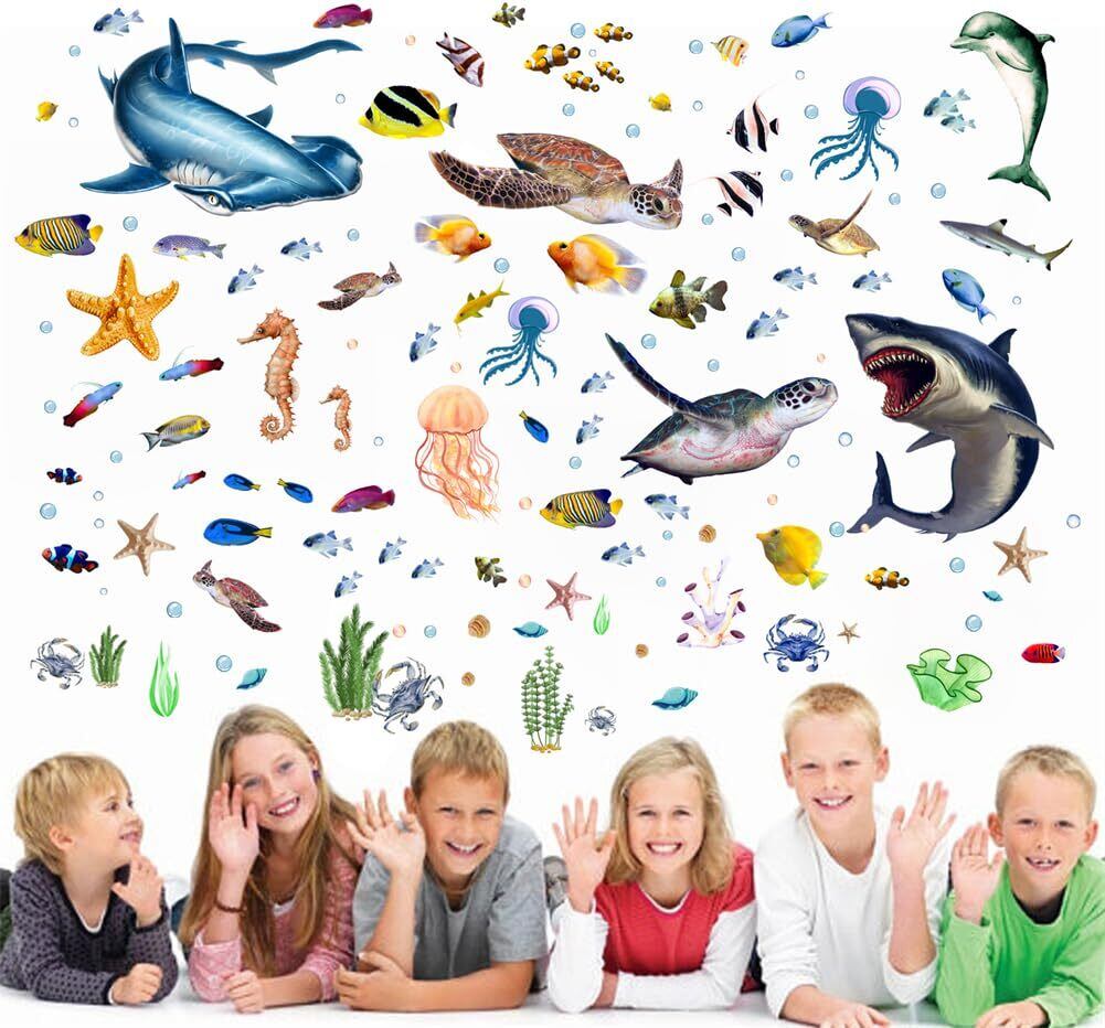 HOTIYOK ウォールステッカー 深海魚 海 海の中 おしゃれ サメ ウミガメ クラゲ ヒトデ イルカ 水ぶくれ 絵画風 壁 シール 冒険を見る 海の生き物 DIY 壁紙 家具 ステッカー お風呂 ポスター 防水 幼稚園 保育園 wall sticker 男の子 女の子 子供 部屋 御洒落 ウォールペーパー ウォールデコ 寝室用 壁紙