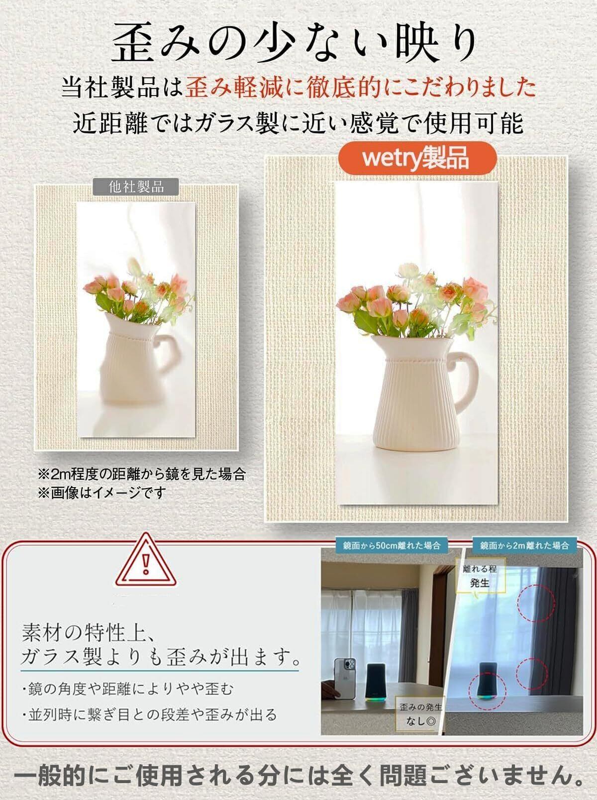 【歪み超軽減】これまでのアクリル製鏡は通常のガラス製鏡に比べると極端に歪みがひどい物が多かったです。当製品は歪み軽減に徹底的にこだわり、近距離ではガラス製に近い感覚で使用可能の上、ガラス製鏡より軽くて安全です。