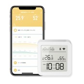 この温湿度計は、スマートリモコンと連携が可能。居室の温度と湿度のデータをスマートフォンから簡単に確認でき、環境の調整もスムーズです。「※詳細については、お気軽にお問い合わせください。」