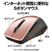 バッファロー マウス 無線 ワイヤレス 静音 5ボタン 【戻る/進むボタン搭載】dpi切替 BlueLED ベージュピンク BSMBW325BP