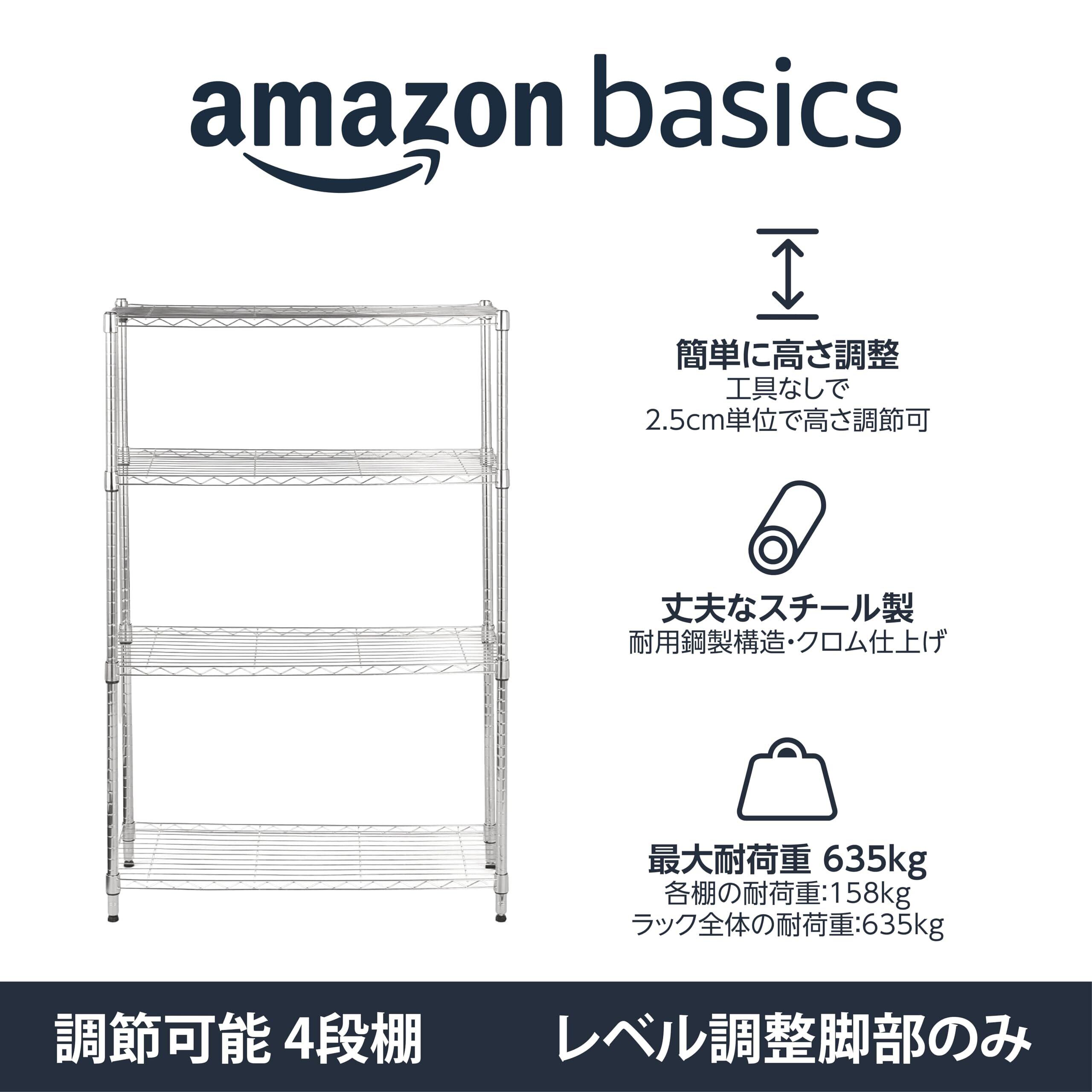 「Amazonベーシック 4段スチールラック」をぜひご覧ください!このメタルラックは、高い耐荷重性能を誇り、あらゆる用途に応じて使いやすい設計が特徴です。